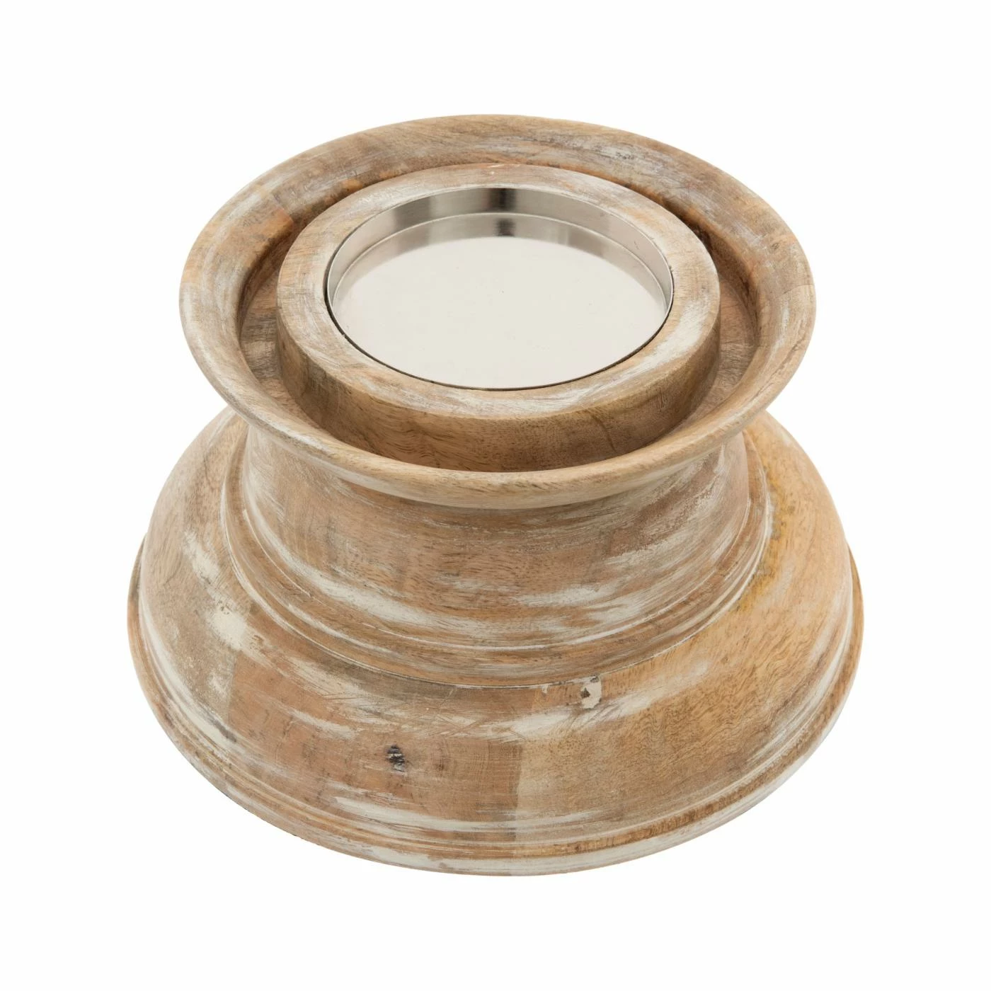 - Mango wood base with a whitewashed finish