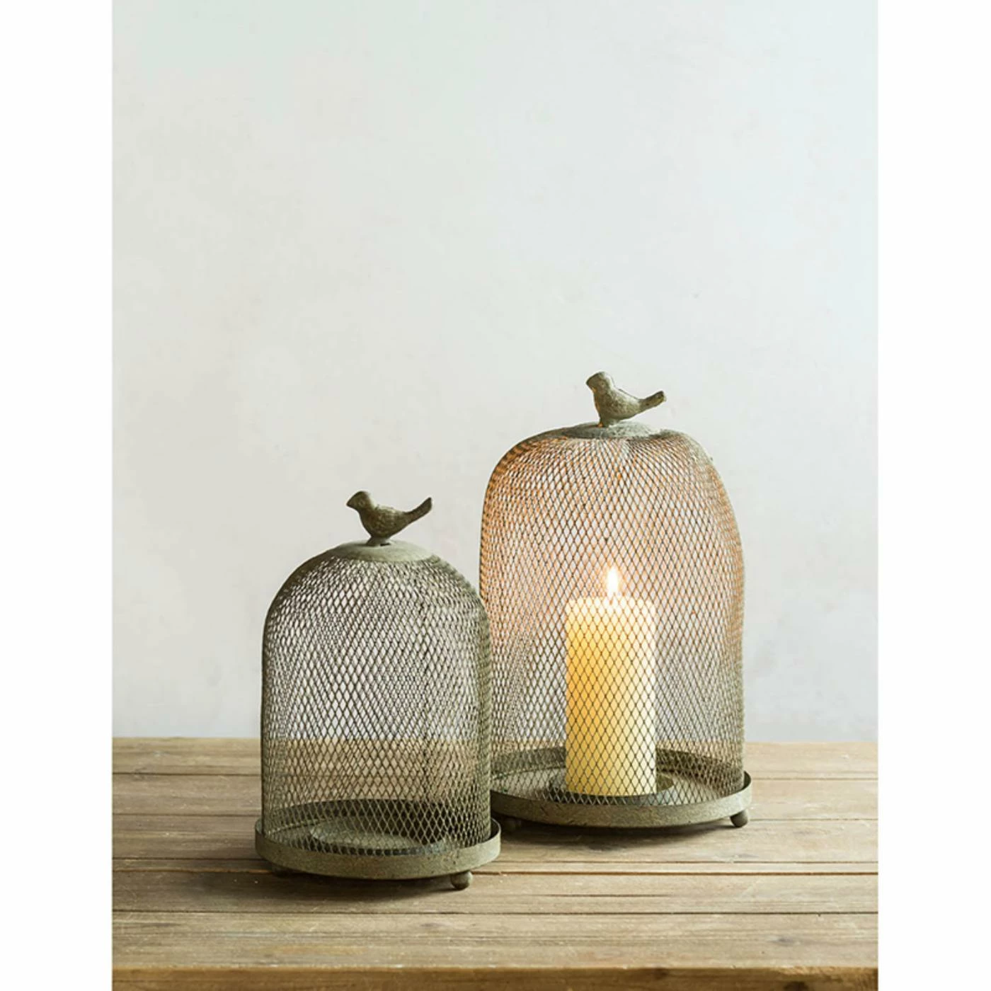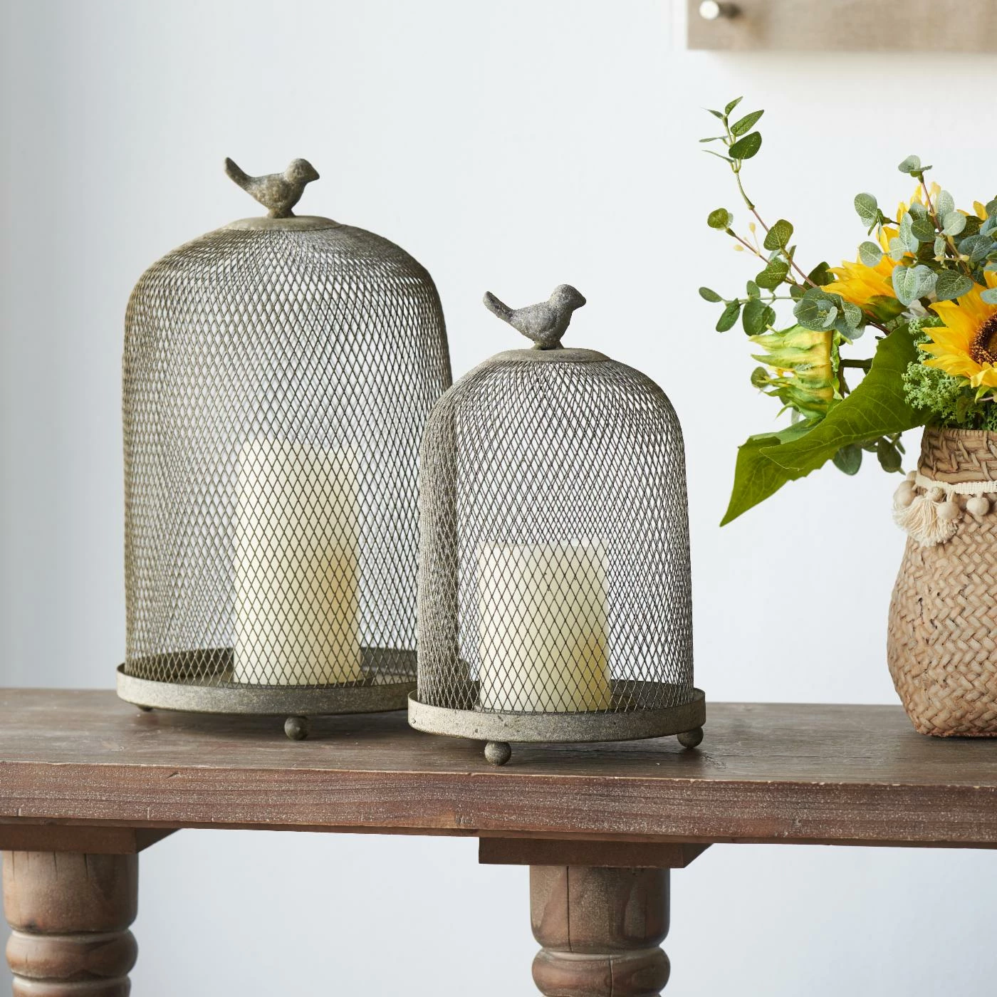 Enhance your farmhouse dΓ©cor with the vintage charm of A & B Home Candle Lanterns – Set of 2. These rustic candle lanterns feature a domed mesh design topped with a tiny bird for a chic and shabby style you’ll adore.