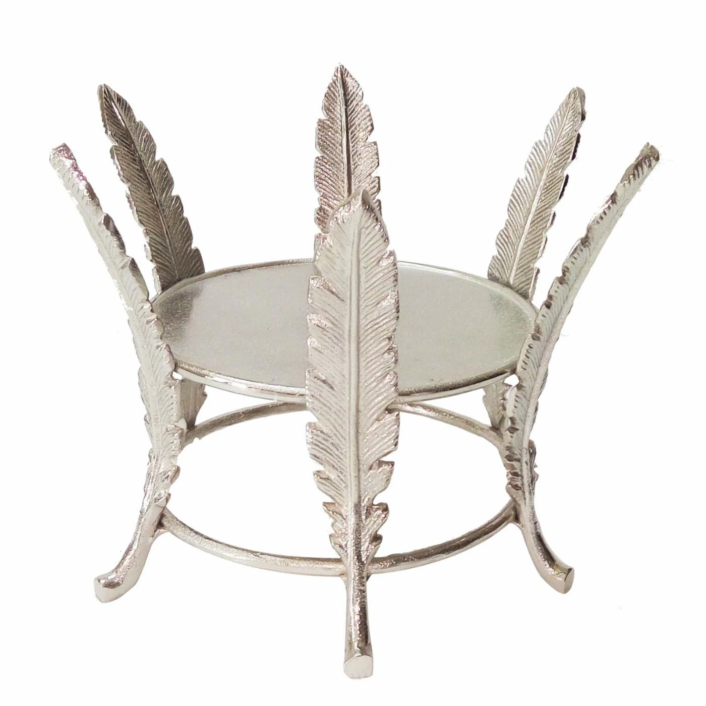 Intricate feather details surround the AB Home Leaf Pillar Candle Holder. This aluminum candle holder offers a silver finish that shines in any style of decor.