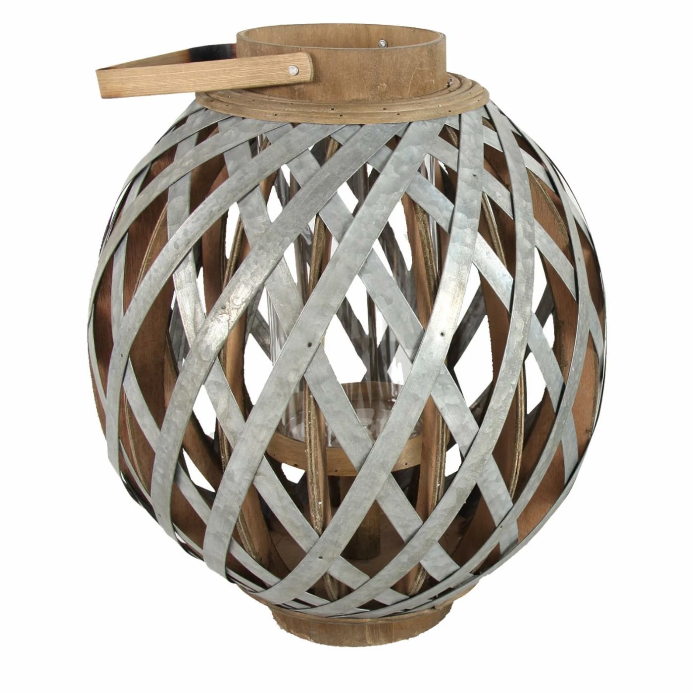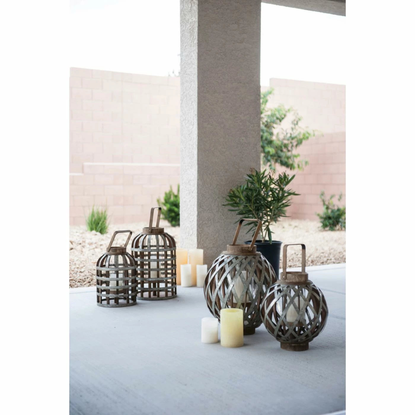The rustic combination of raw metal and unfinished wood are the perfect contrast to the intricate, woven style of the A&B Home Round Lantern. This appealing lantern contains a glass cylinder that protects the candle flame while it illuminates your indoor or outdoor space. Multiple sizes are available, so take the time to find the one that best fits in your space.