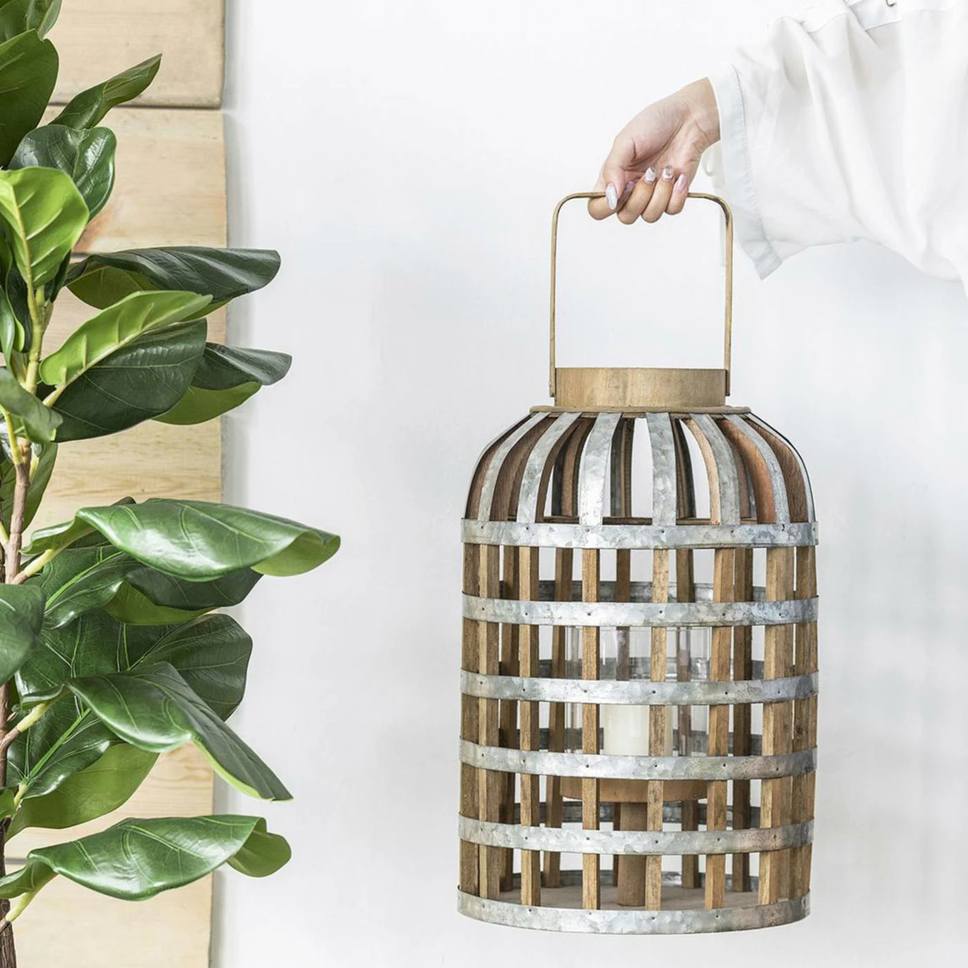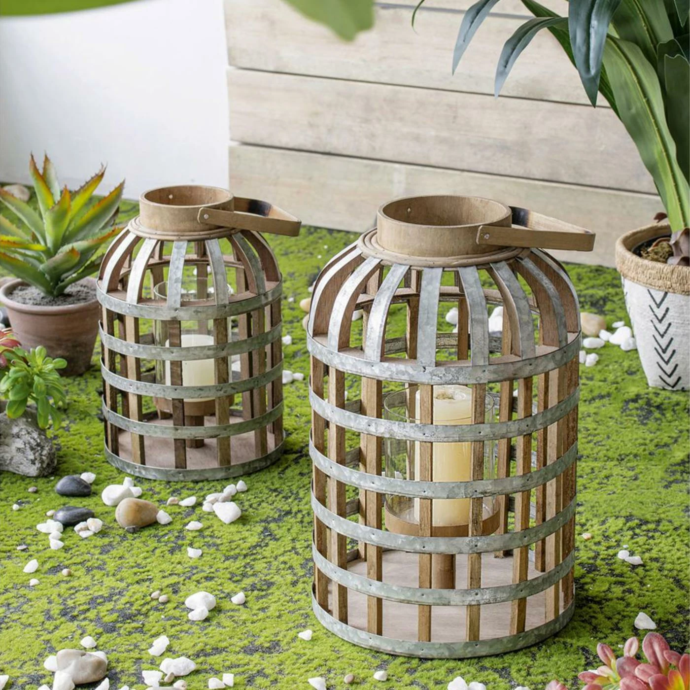 The wood slats and raw metal of the A&B Home Wood / Metal Lantern create a style that’s both modern and rustic. Offered in a range of sizes, you’ll be able to enjoy the gentle flickering of a live flame from within. A glass shade helps keep the candle burning, so feel free to locate it inside, outside, or wherever you need a bit of cozy illumination.