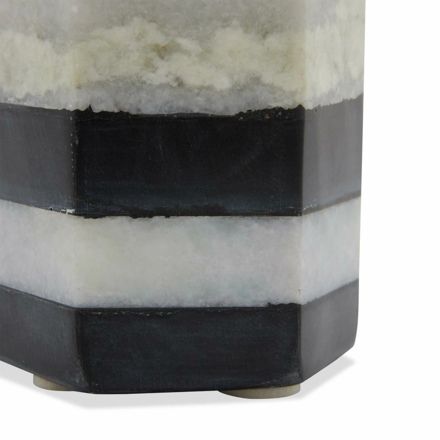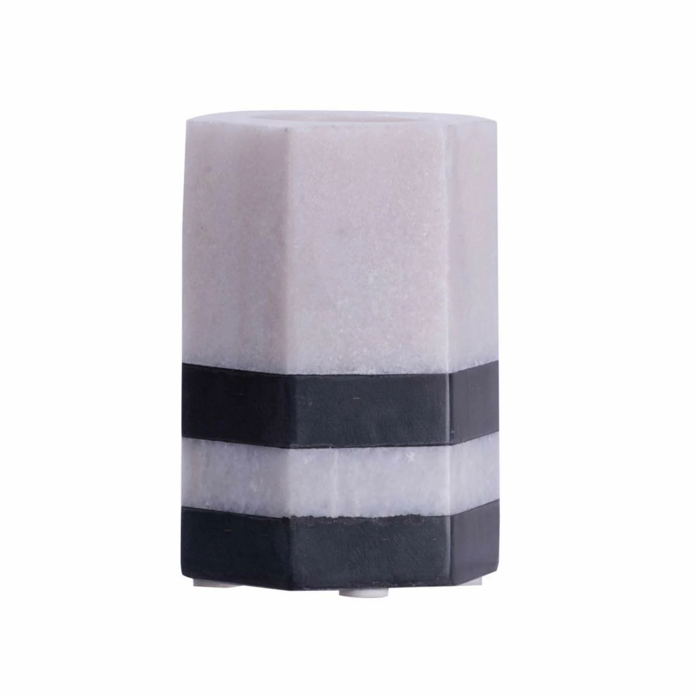 Bold stripes and a hexagonal finish make the AB Home Striped Marble Tea Light Candle Holder a luxurious addition to your decor. This marble and stone candle holder features a white and black color scheme.