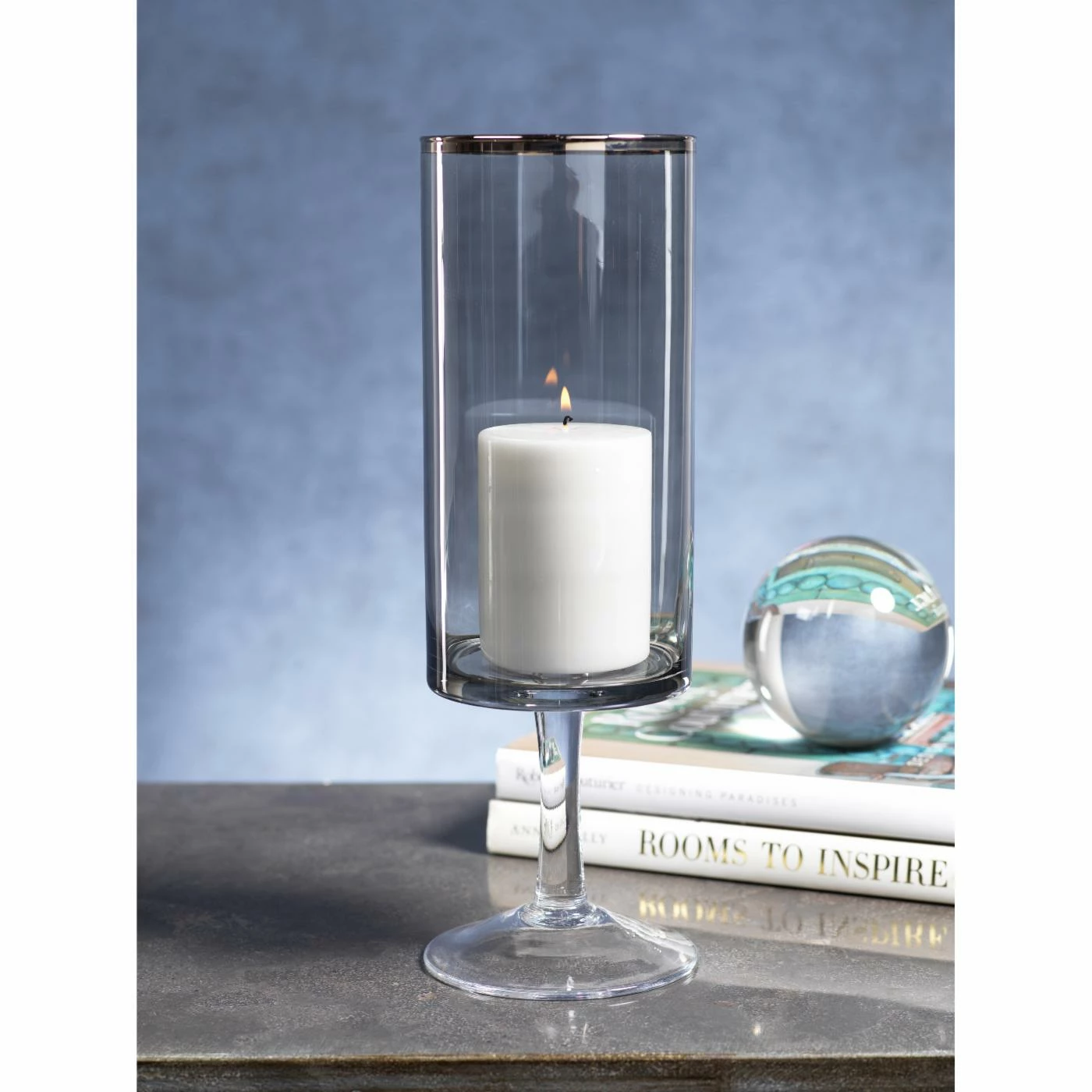 The smoked glass and long stem of the Belicia Hurricane Candle Holder make it a handsome, yet elegant, piece of dΓ©cor for your home. Its sleek modern design makes a lovely centerpiece for your dining room table. Place a candle inside or use it to hold fresh-cut flowers or dried botanicals.