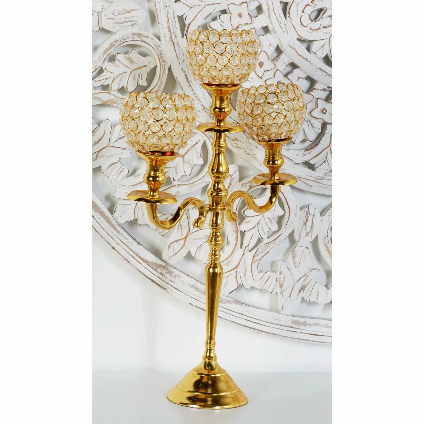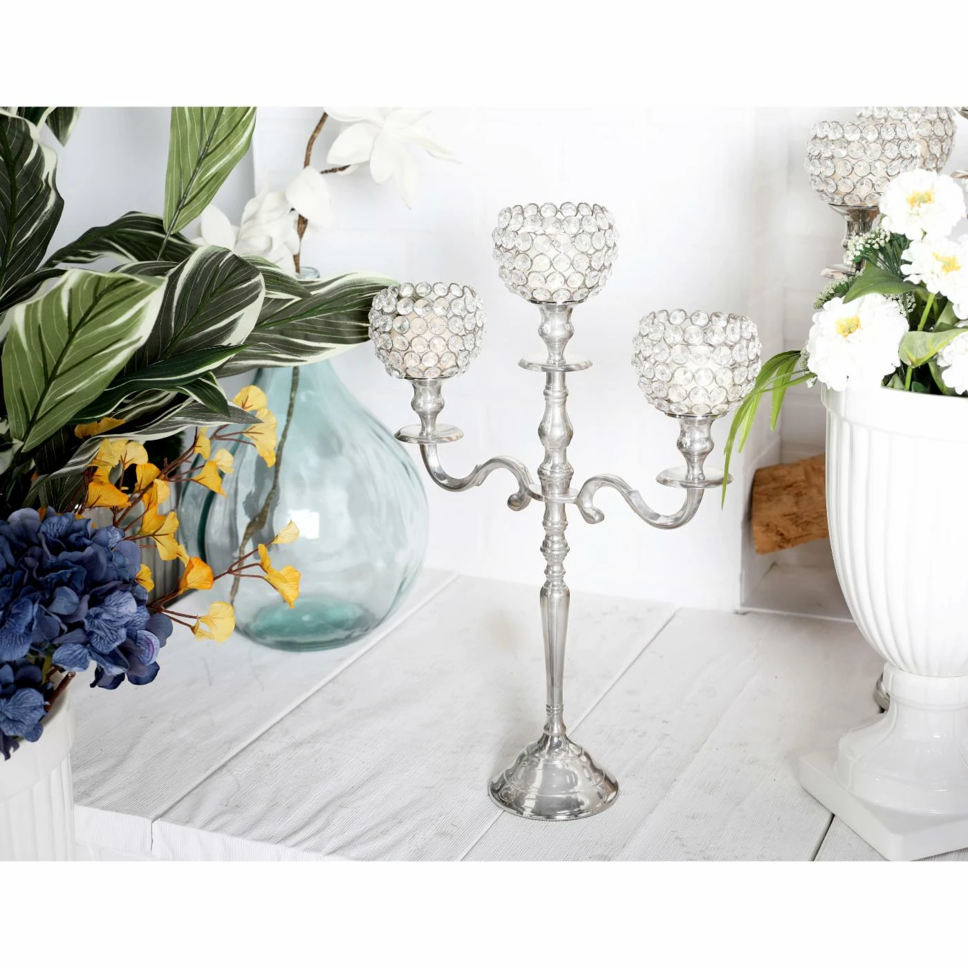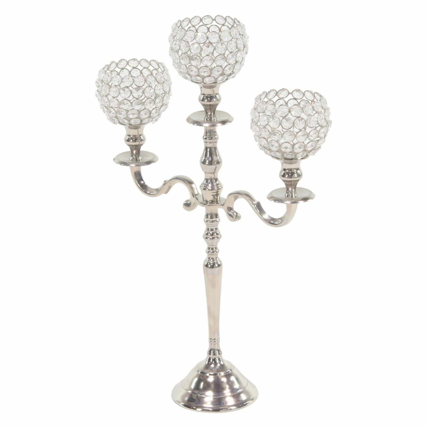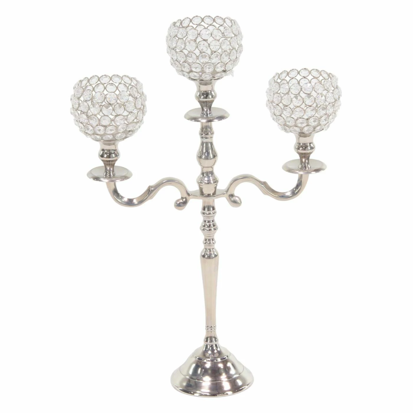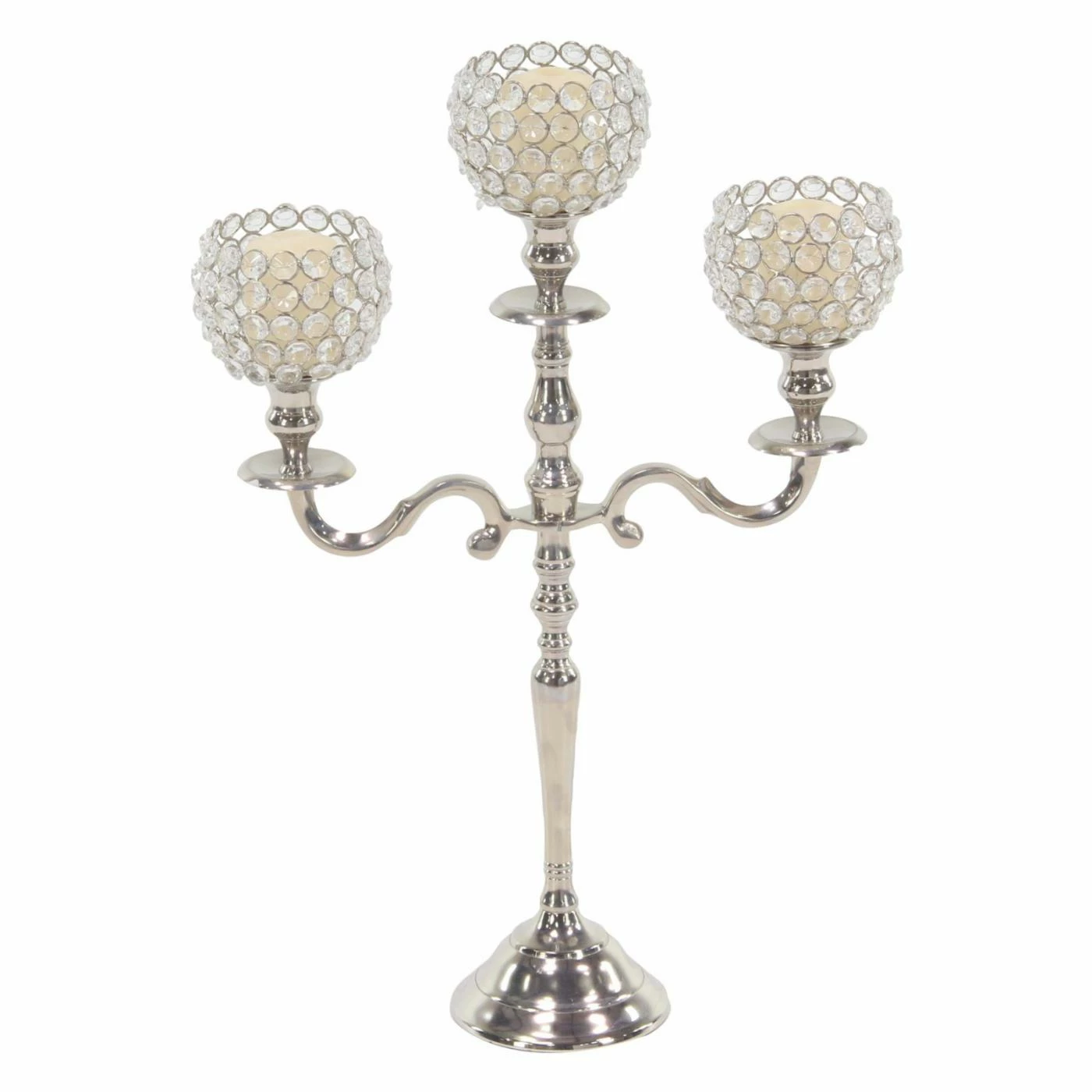 Fill your living space with elegant sparkle, compliments of the DecMode Traditional 3-Bobeche Aluminum and Acrylic Beaded Candelabra. The three votive candle cups glisten with clear acrylic beads and rest on a traditional, three-arm turned candlestick. Aluminum construction ensures that the candelabra will not tarnish or corrode.