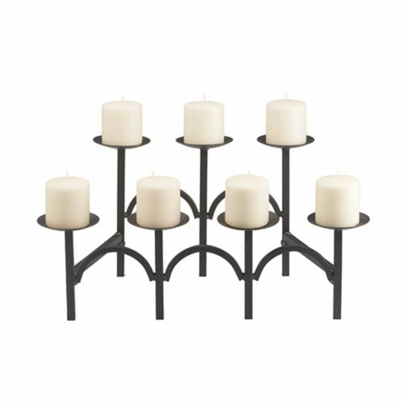 Show your sophisticated sense of style by bringing home the Two Tier 7 Candle Black Fireplace Candelabra. This elegant candelabra has broad candle stands arranged in two tiers, with arched connectors. You can use this set to create a warm ambience around your hearth, without the heat and embers of a fire. With its wrought iron construction and attractive finish, it can greatly stylize your hearth during summer.