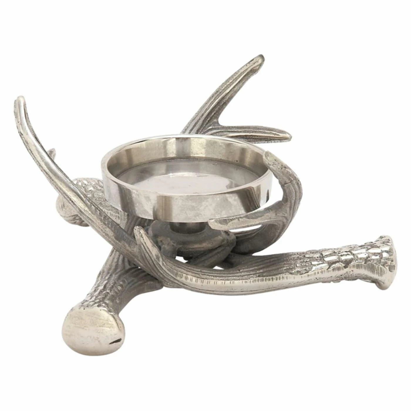 A tangle of realistically carved aluminum antlers make the DecMode 4-in. Aluminum Antler Candle Holder perfect for a southwestern chic or lodge-inspired space. The candle holders feature a tarnished silver finish that showcases each detail.