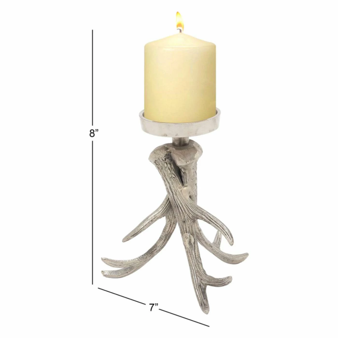 Fans of modern organic, southwestern chic, or lodge-inspired dΓ©cor delight in the DecMode 8-in. Aluminum Antler Candle Holder. The realistic-looking crossed antlers are ribbed for detail and crafted of tarnished aluminum. This candle holder stands eight inches tall.