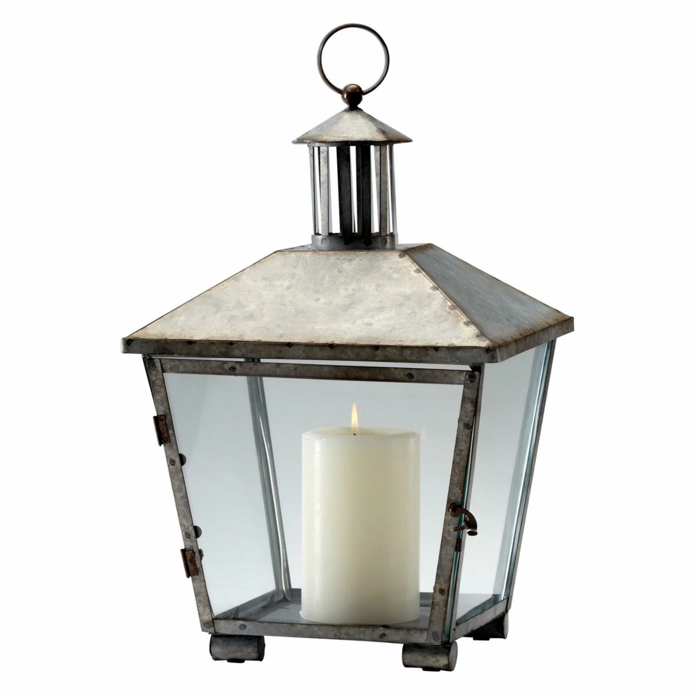 Bring a light glow to any room of your home with the Cyan Design Delta Lantern. This rustic lantern is crafted of metal. The tapered glass panels provide a clear view of the candle you place inside.