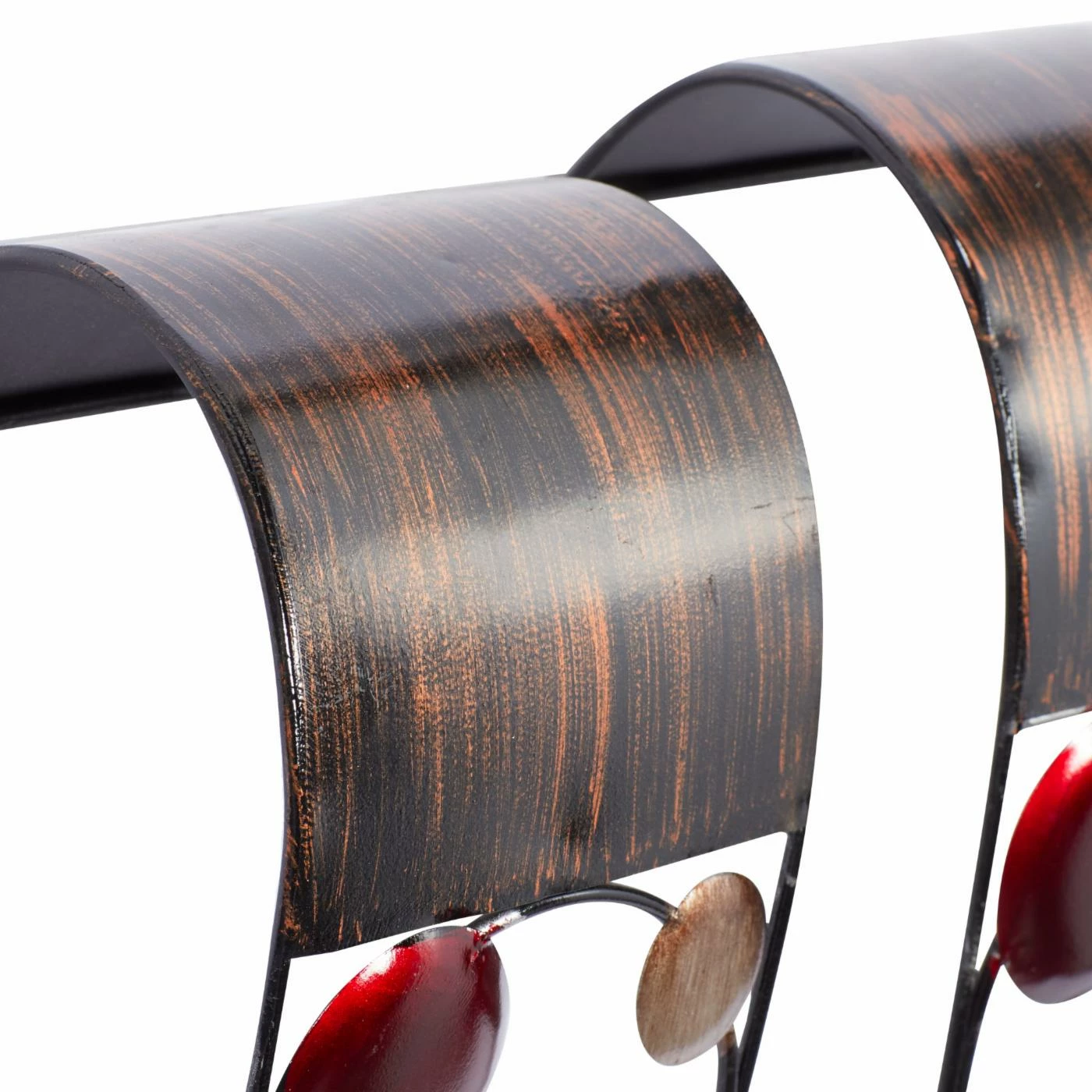 - Bronze, red, and silver finish