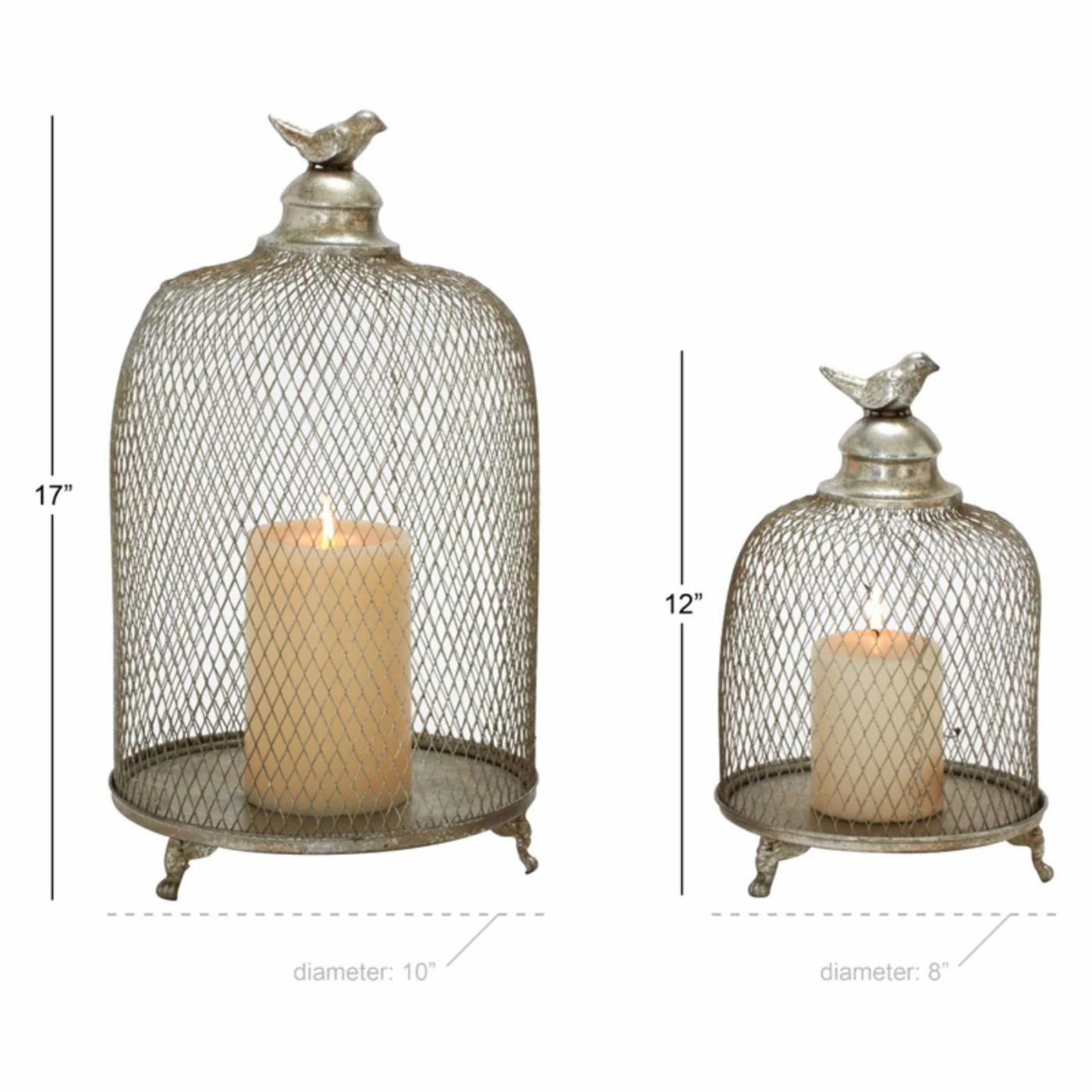 Topped with a charming bird, the DecMode 52990 Lantern Candle Holder – Set of 2 lends whimsical beauty to your decor. The wire mesh design is elegantly finished in silver and features decorative feet for refined style.