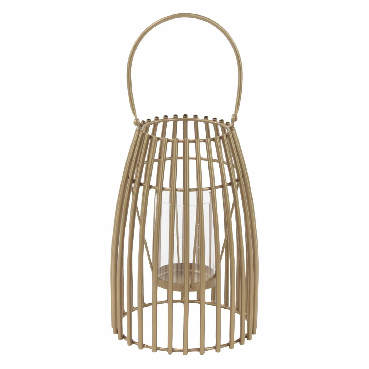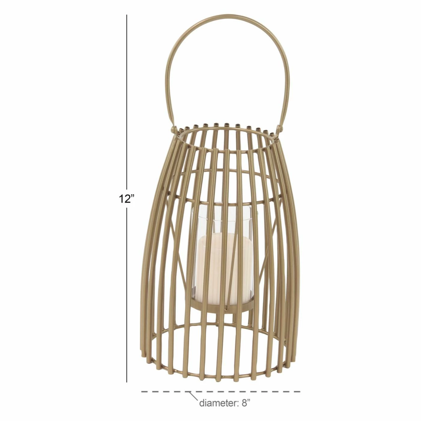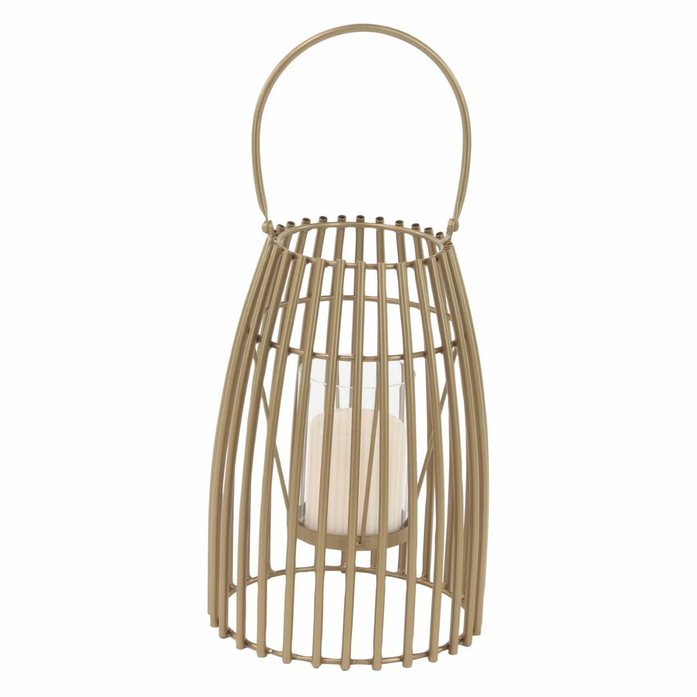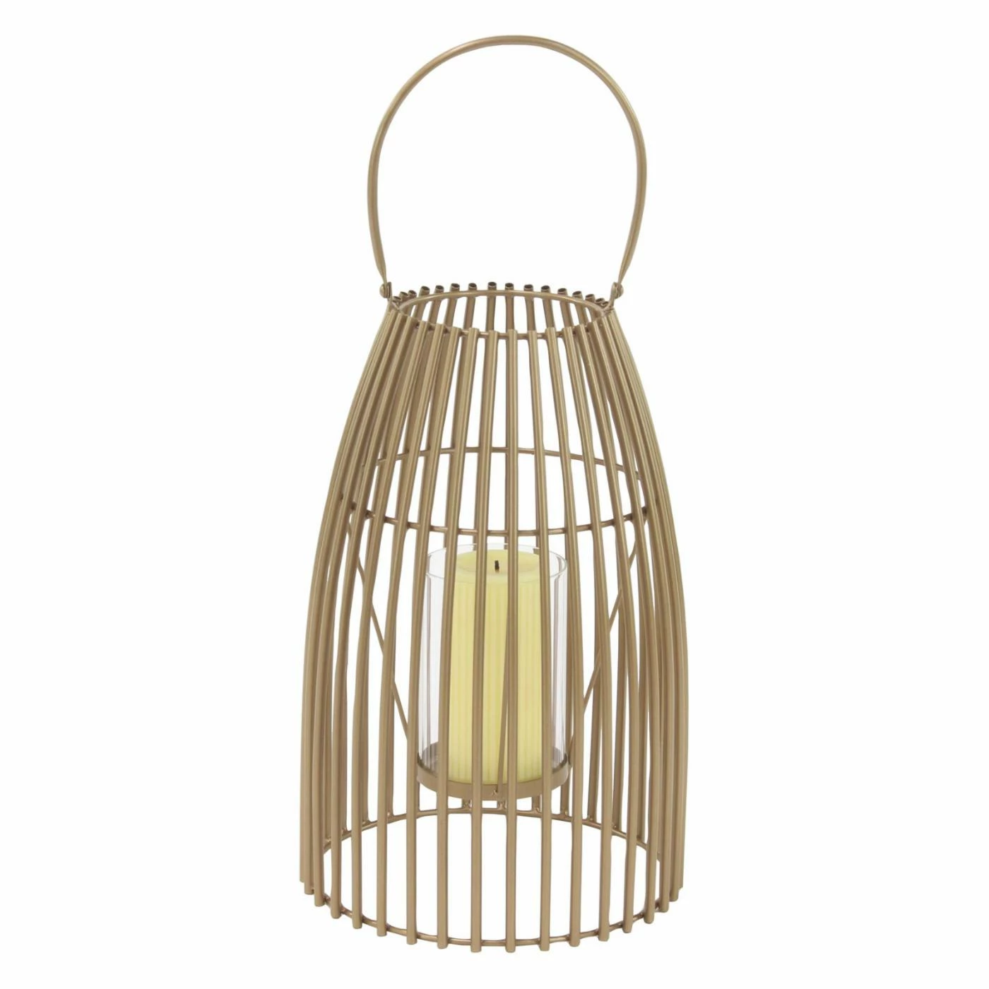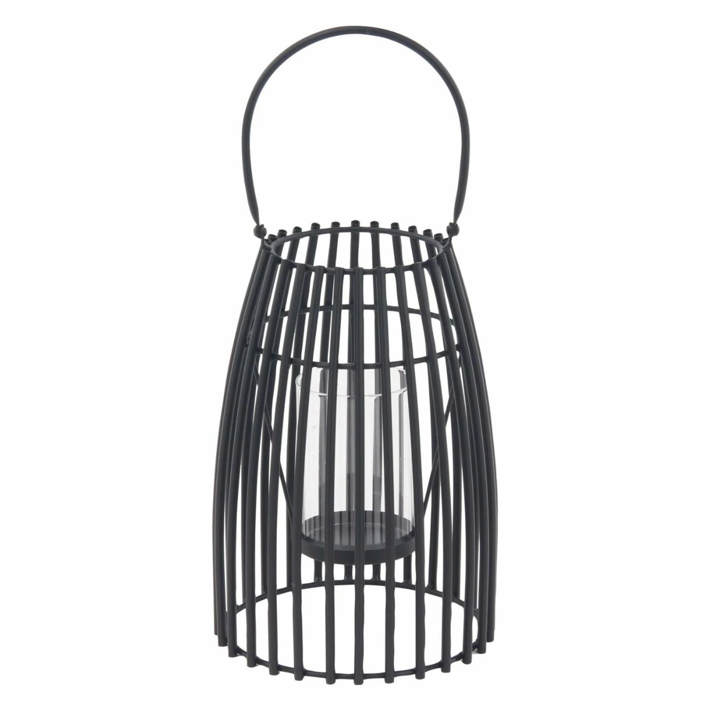 Simple iron slats and an understated arched handle give the DecMode Iron and Glass Decorative Caged Black Lantern a minimalist look. The heavy-duty iron lantern comes with a clear glass cup that encloses your candle for a safer burn.