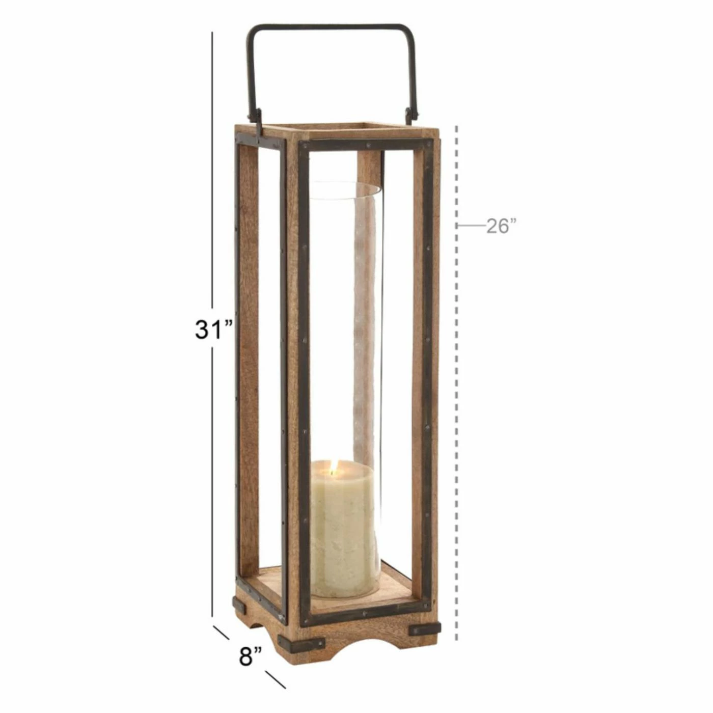Crafted from mango wood and iron, the DecMode Lantern Candle Holder – Black offers a warm and cozy design that enhances your decor while housing your favorite candles. The arched handle and brass accents lend eye-catching depth and style to this piece.