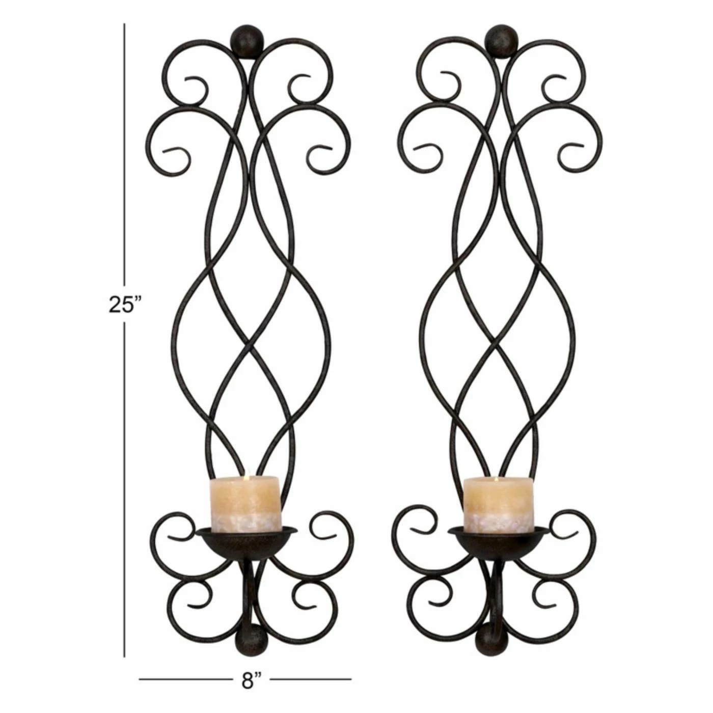 The DecMode Metal Candle Wall Sconce – Set of 2 features a pair of elegant wrought iron scrollwork holders that bring your home a graceful look. Each sconce is completed with a candle cup accented with a ball finial to give you a lovely way to add subtle light to your home.