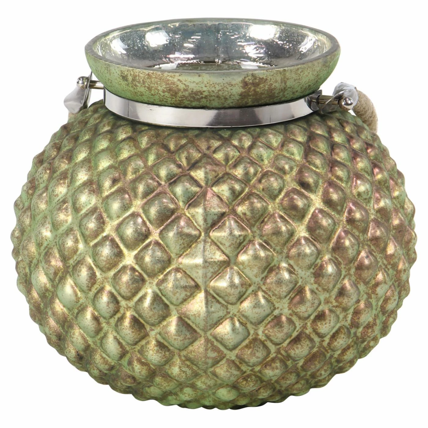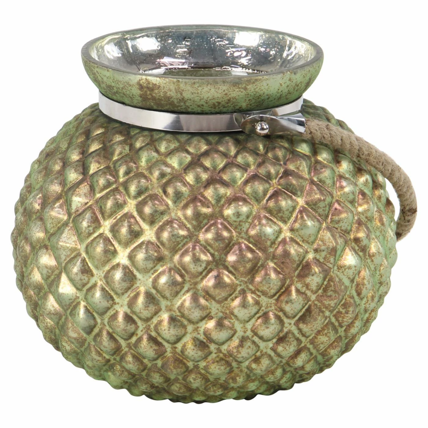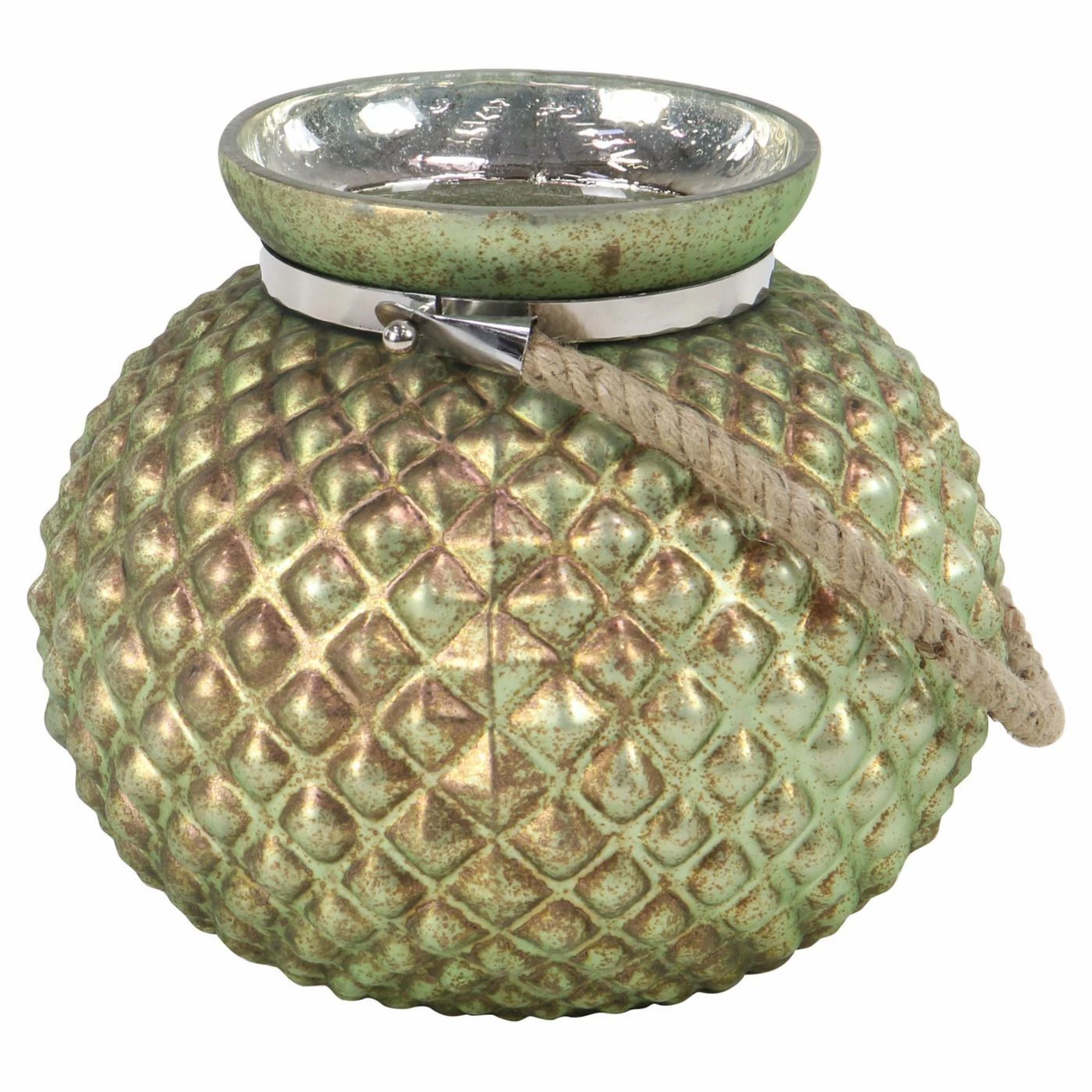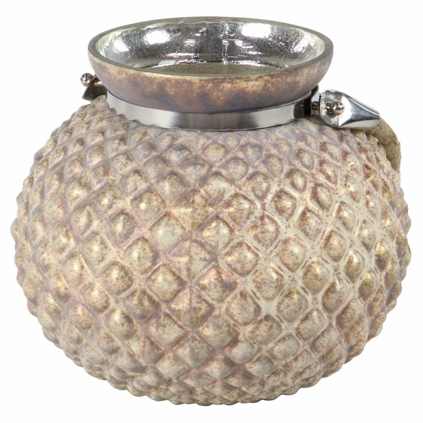 Raised diamonds add texture to the DecMode Metal Scales Tea Light Holders – Set of 2. Your choice of available finish option ensures this candle holder set will work beautifully with your dรฉcor. Each holds one tea light candle (sold separately) and includes a rustic jute rope handle. The set includes a seven-inch and nine-inch tall holder; each measures ten inches in diameter.