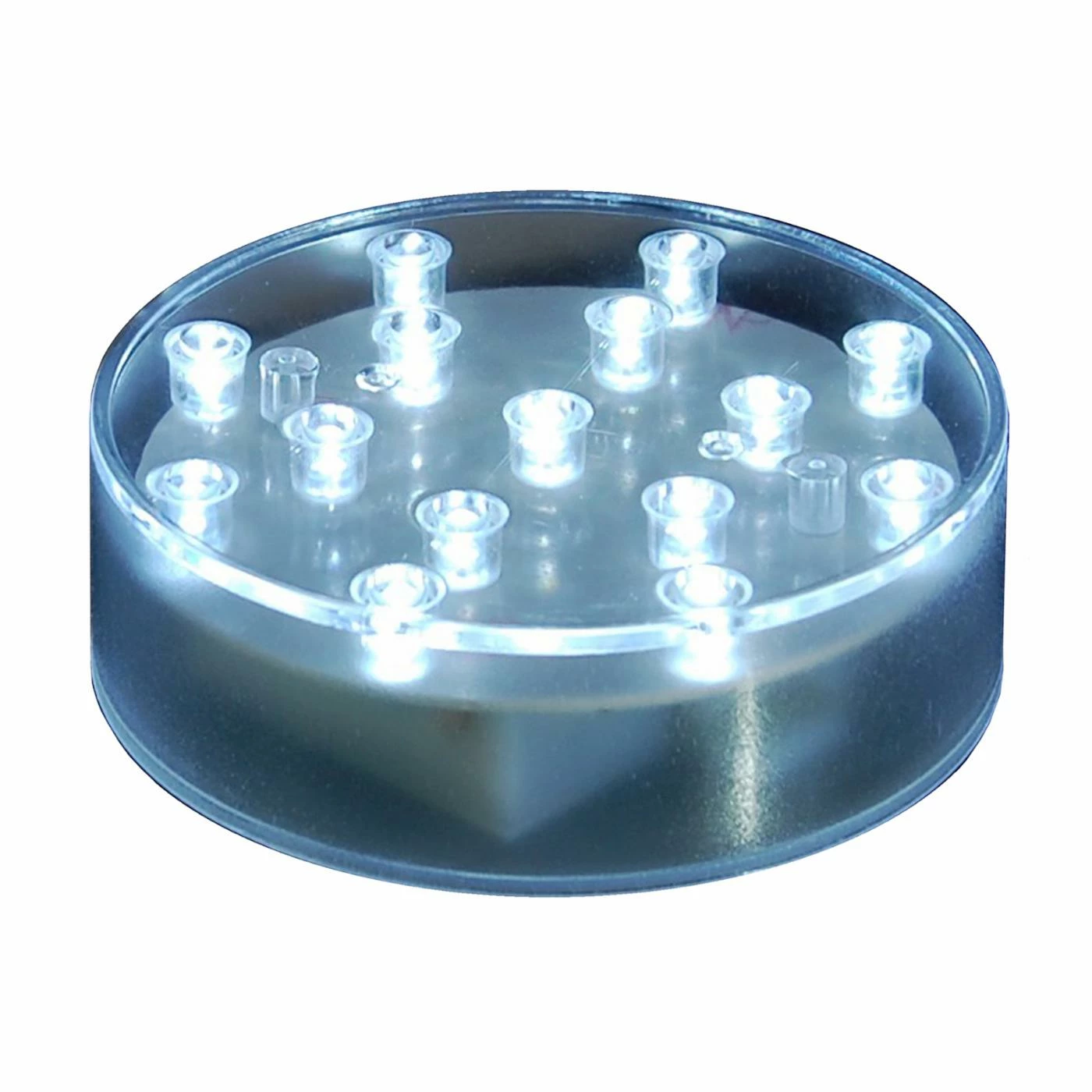 - 15 bright white LED lights on 1 round black base