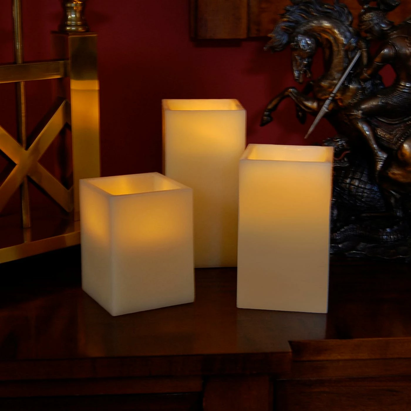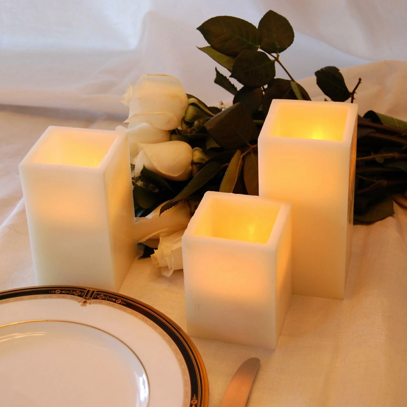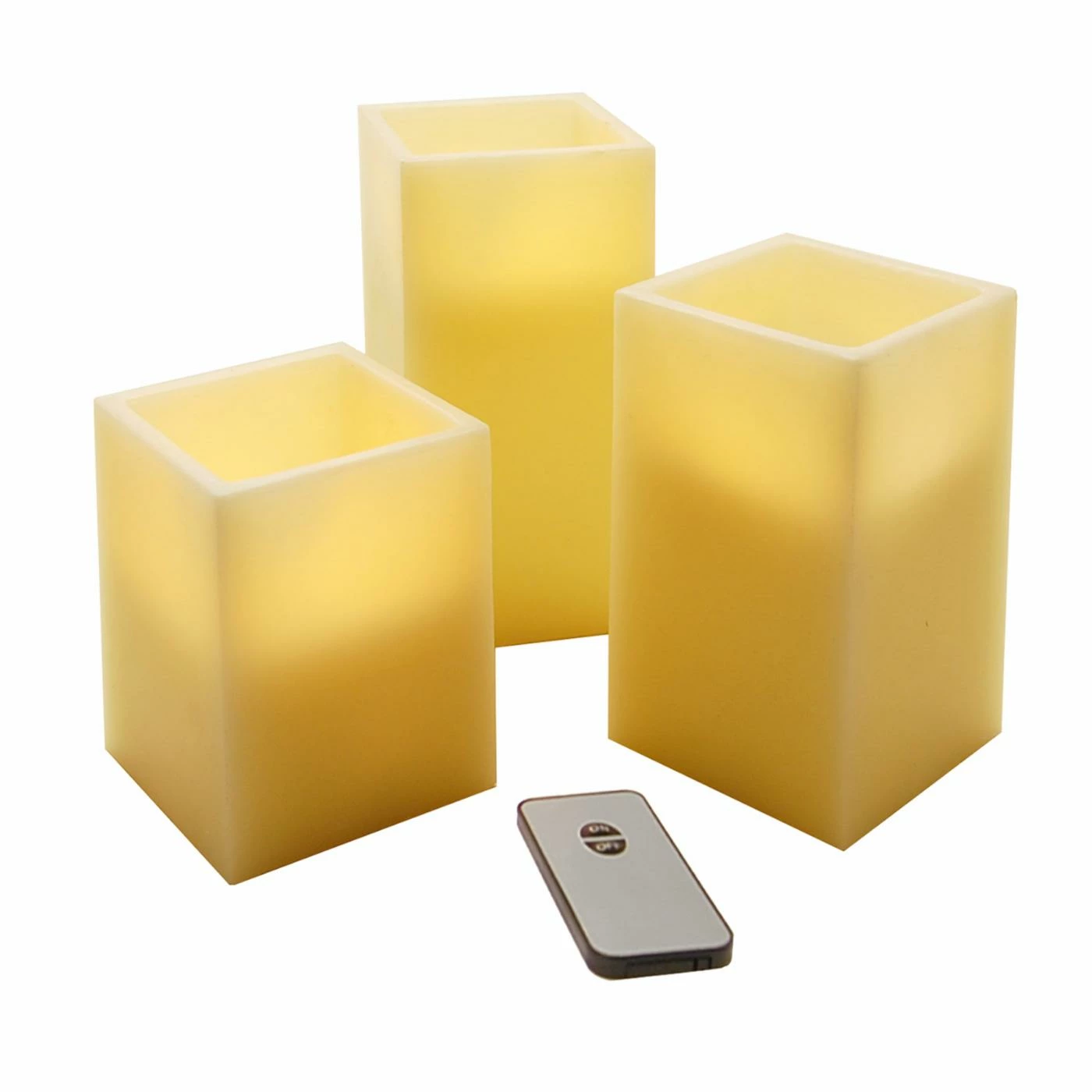 Illuminate your home with the warmth and glow of the Lumabase LED Remote Control Square Wax Candles – Set of 3. Ideal for tabletop, mantel or windowsill display, these remote control way candles are made from paraffin wax and are safe to let burn all night.