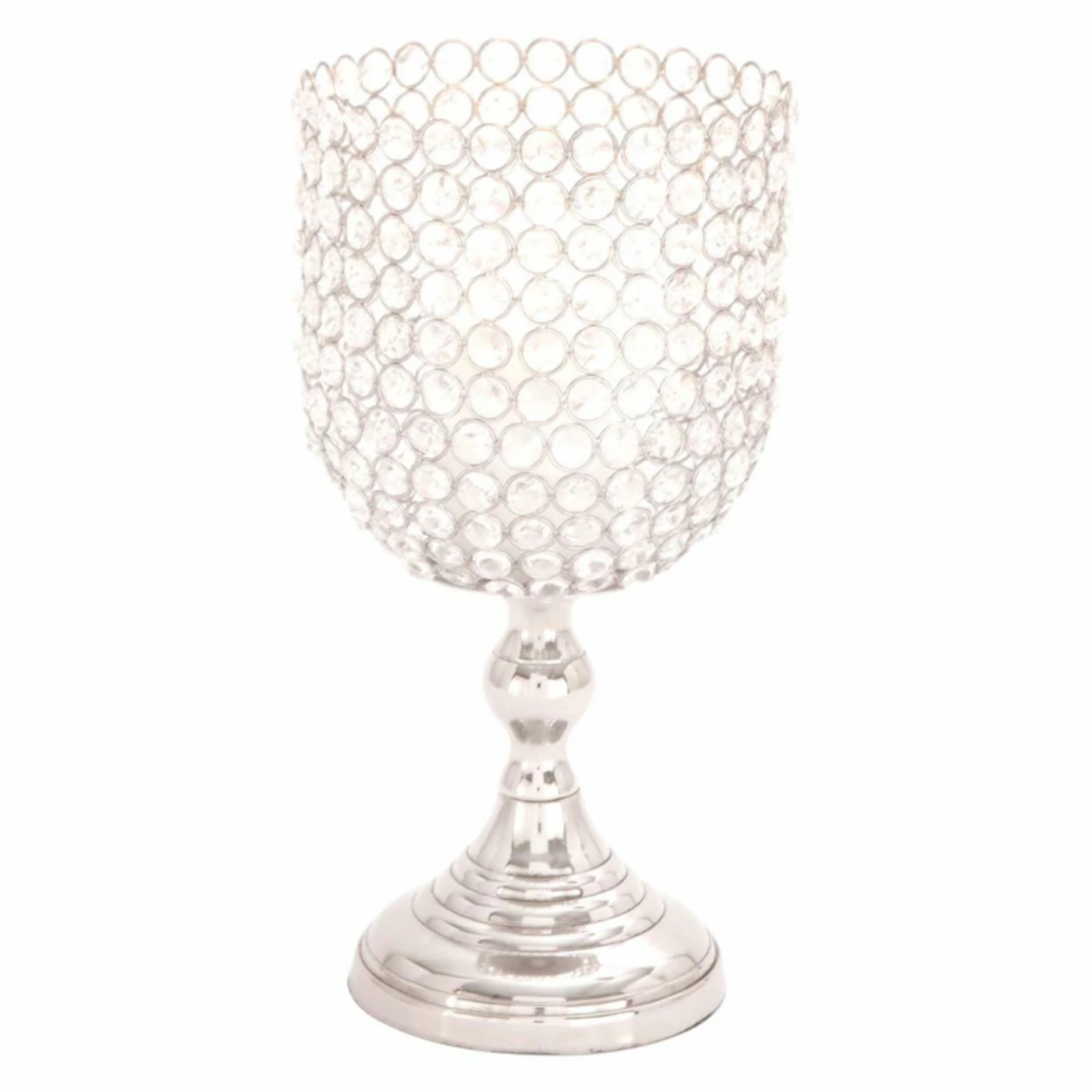 Once candlelight hits the faceted crystal gems featured in the DecMode Aluminum Crystal Candle Holder, you’ll get a glamorous glow. This candle holder is made of polished aluminum and stands 14 inches tall.