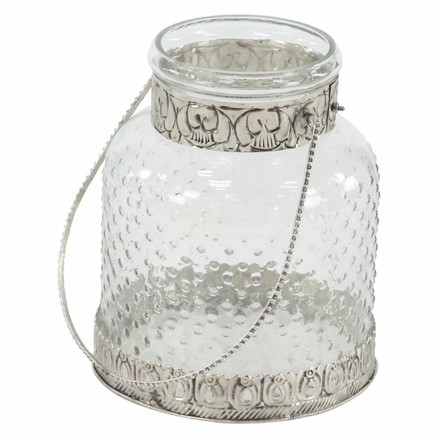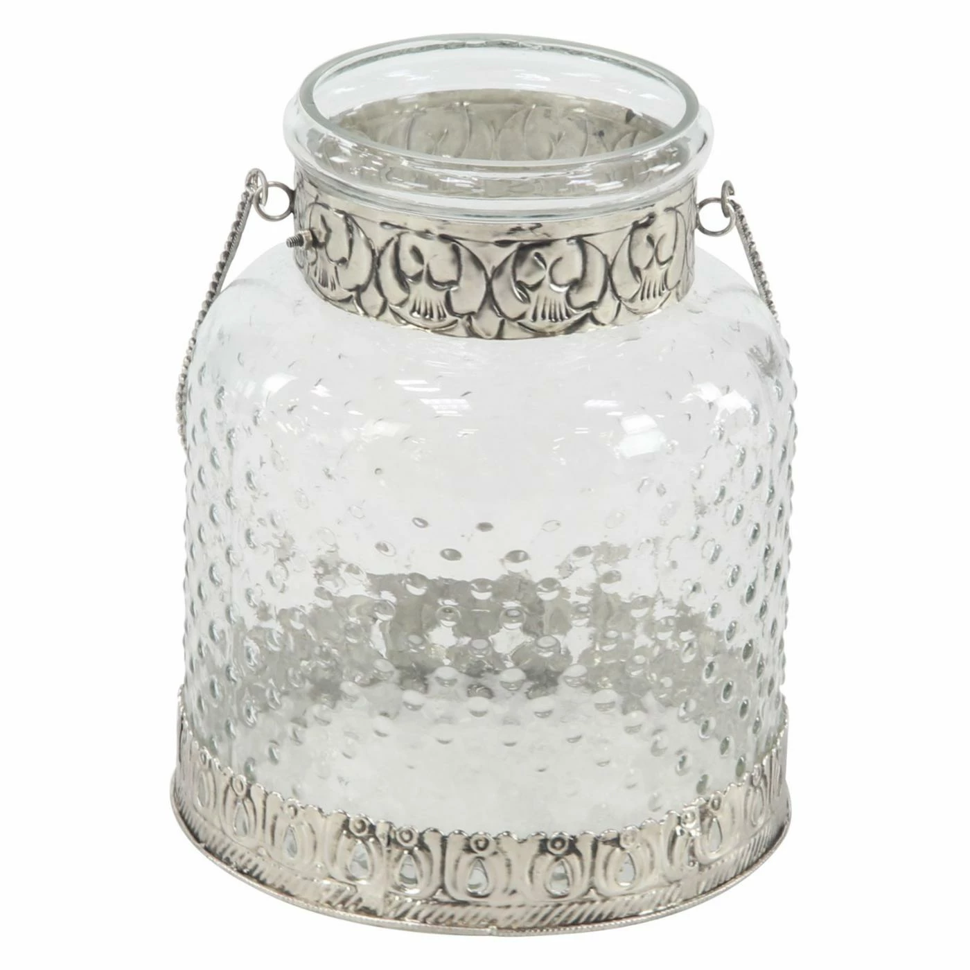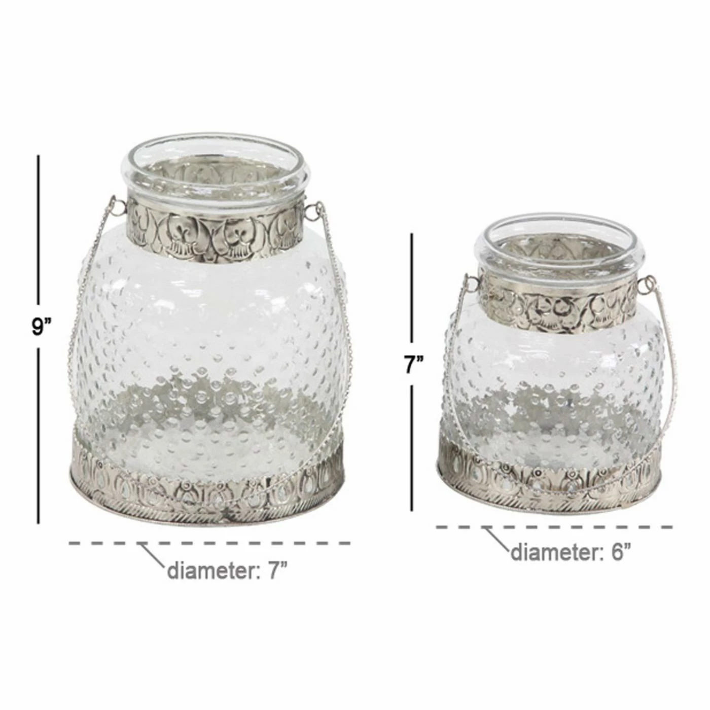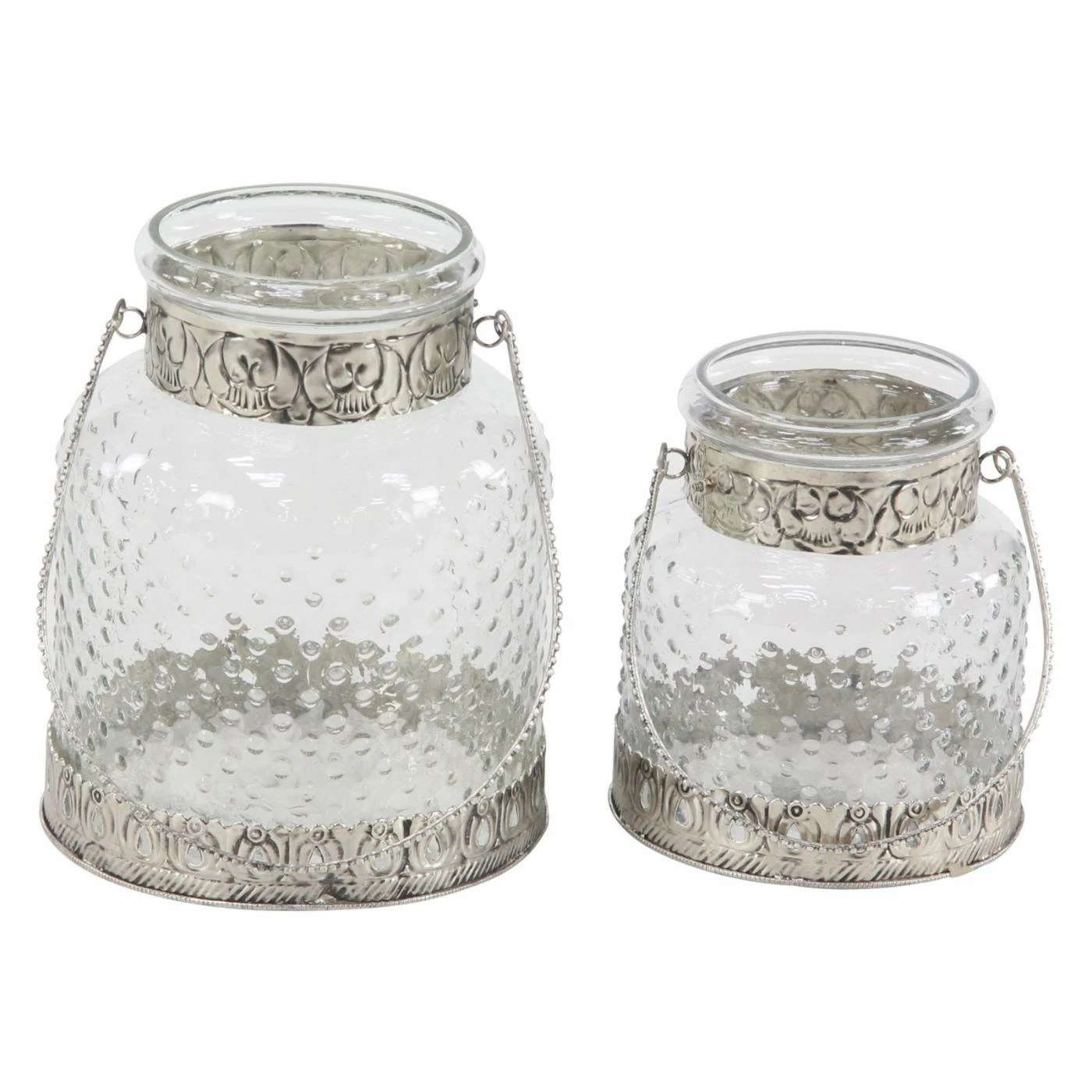 Adorned with delicate metal accents, the DecMode Clear Glass Jar Candle Holders with Iron Handles – Set Of 2 adds a touch of rustic charm to any space. The glass body is decorated with a lightly textured effect, with a clear finish to allow the light to shine through. This set of two candle holders is best suited to house votive style candles.