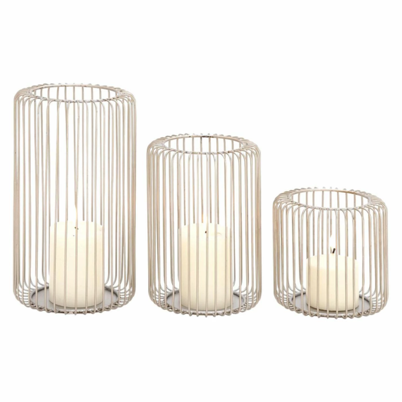 Add candles or leave the DecMode Industrial Arts Metal Candle Holder – Set of 3 empty – your choice! The set includes three metal cage-style candle holders in a polished silver finish.