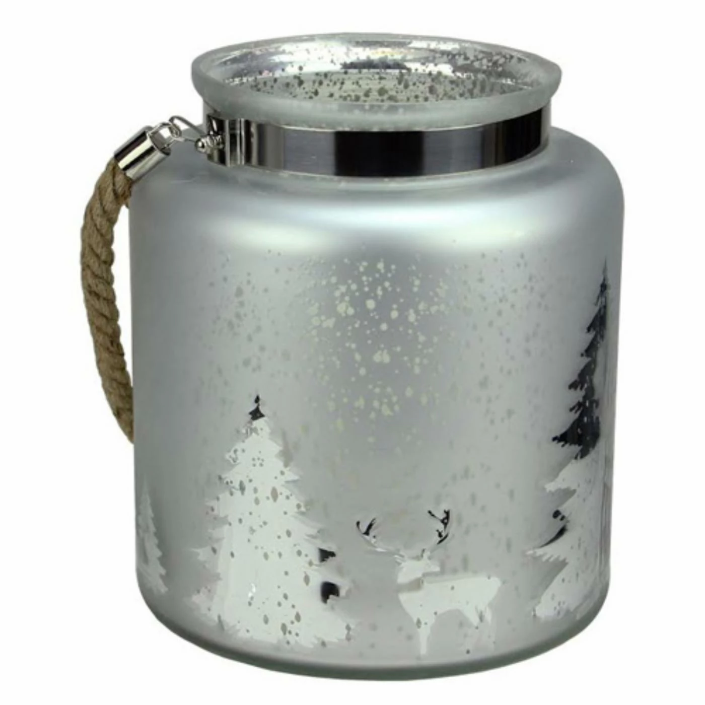 A softly gleaming silver finish adds elegant romance to the Northlight Reindeer and Christmas Tree Mercury Pillar Candle Holder with Handle. A forest scene is etched on the sleek glass sides. A rustic handle allows you to move and carry it with ease.