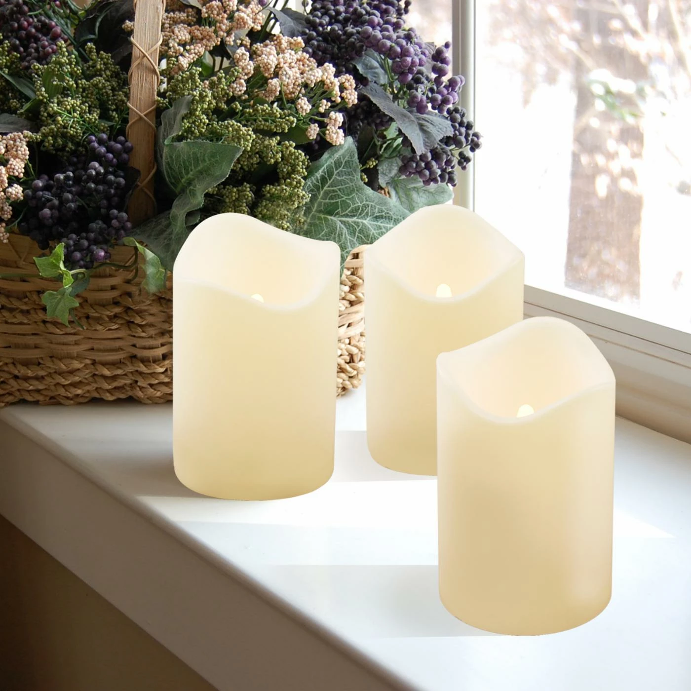 Designed to look just like the real thing, the LumaBase Battery Operated Pillar Candles – Set of 3 lends a safe, flameless glow to your home’s dΓ©cor. Crafted from molded plastic for indoor and outdoor use, these pillar candles offer worry-free illumination with battery-operated LED lighting. Featuring a timer for automatic shut offs, these candles are a delightful way to enjoy the ambience of a lit wick without an open flame. Batteries not included.