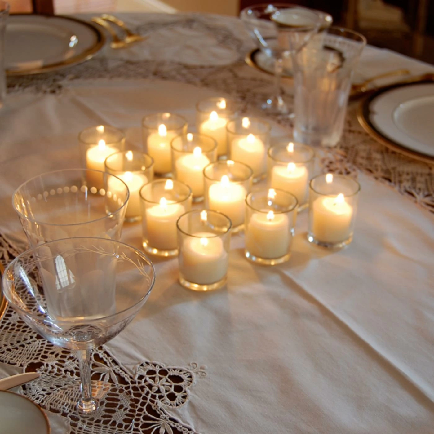 - Set of 12 candles and 12 glass holders