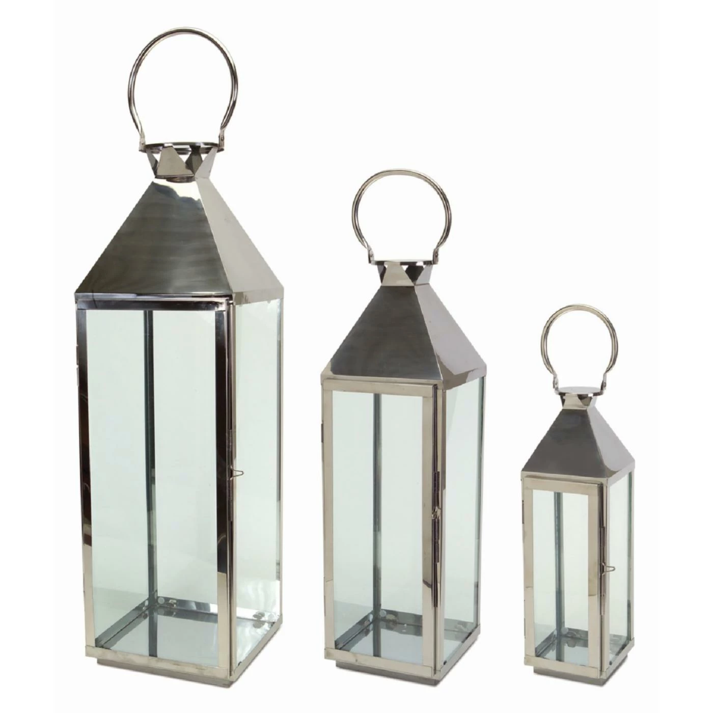 Simple styling lets the glamorous design of the Melrose International Glass Lantern – Set of 3 shine. This glass and metal set features a loop top for versatile use so you can hang or place them anywhere in your dΓ©cor.