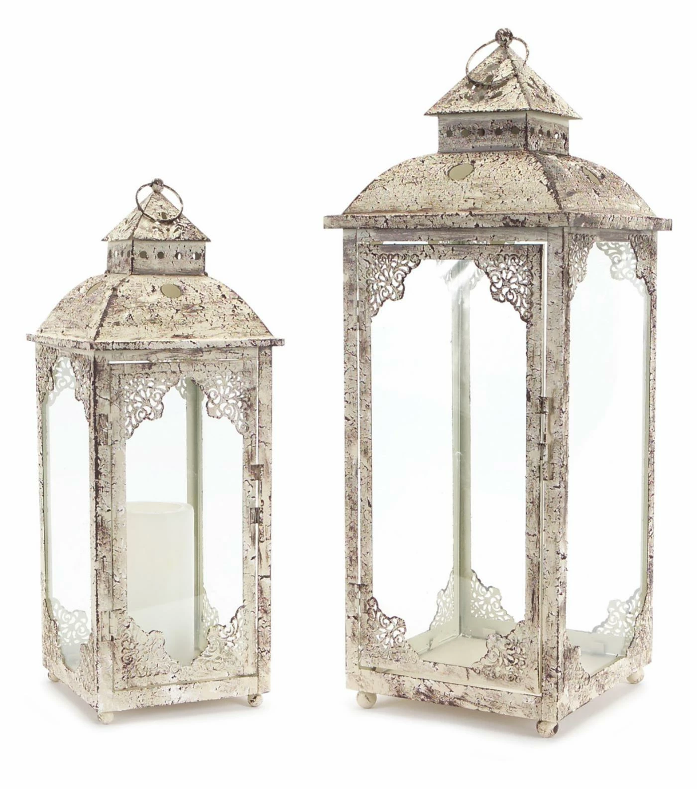 The industrial styling of the Melrose International Metal Lantern – Set of 2 adds an edgy accent to your dΓ©cor. Enhance your room and illuminate your living space with this metal and glass piece.