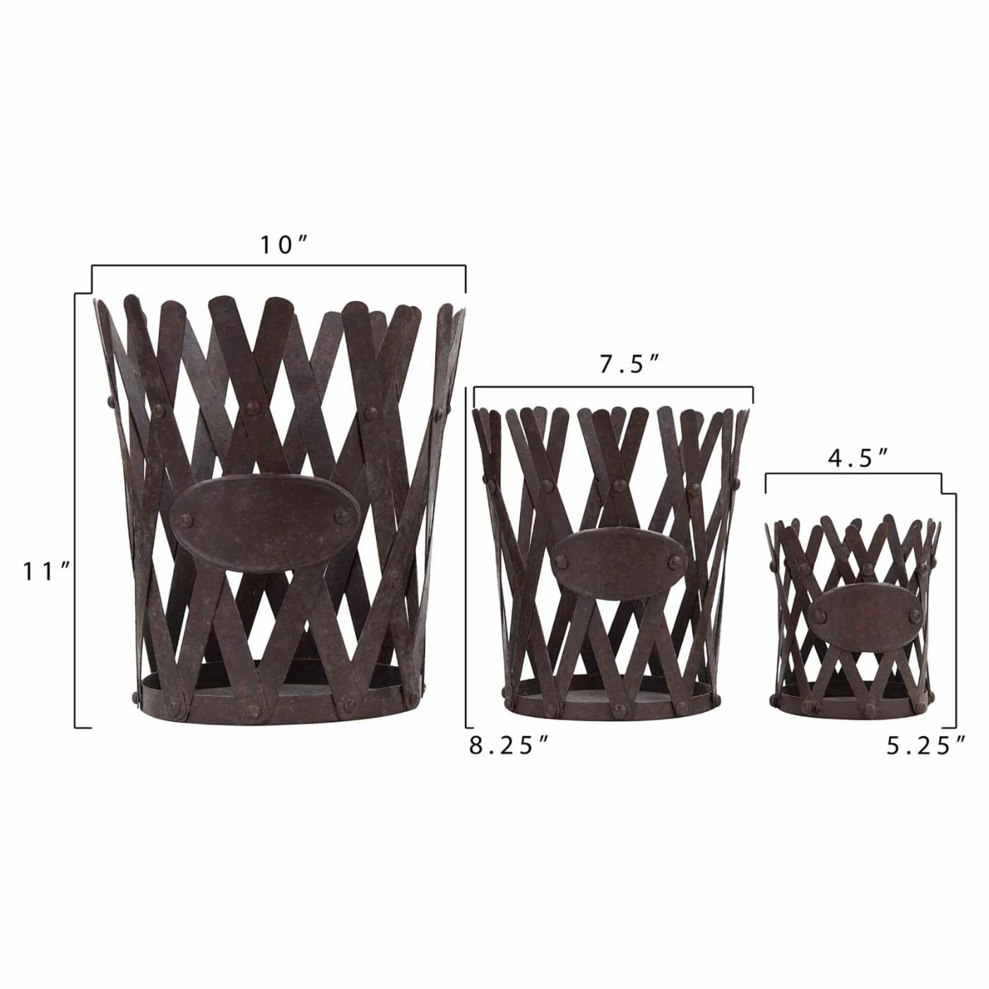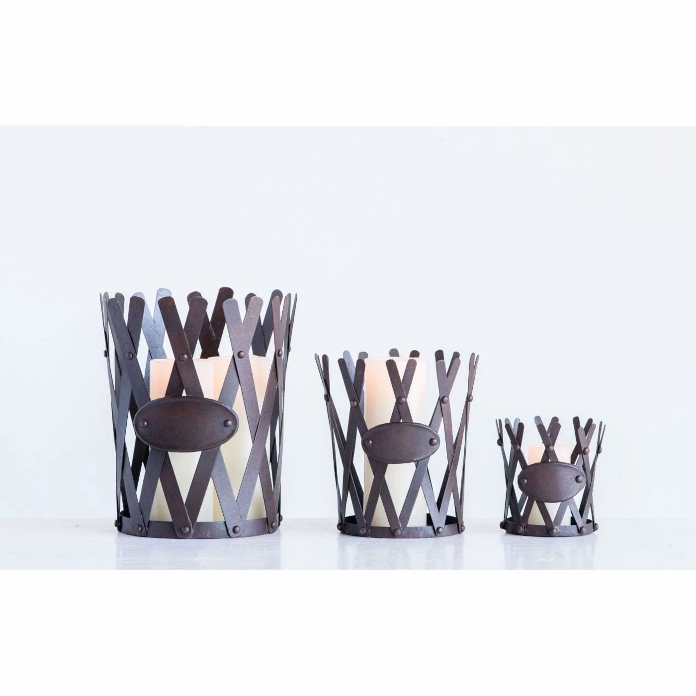 Display your candles in an artful fashion with the 3R Studios Distressed Brown Metal Candle Holder with Accordion Style Sides – Set of 3. These candle holders feature a durable metal construction that takes its style cues from accordion style gates, creating a unique look you’ll love. Their bronze finish lends a handsome final touch.