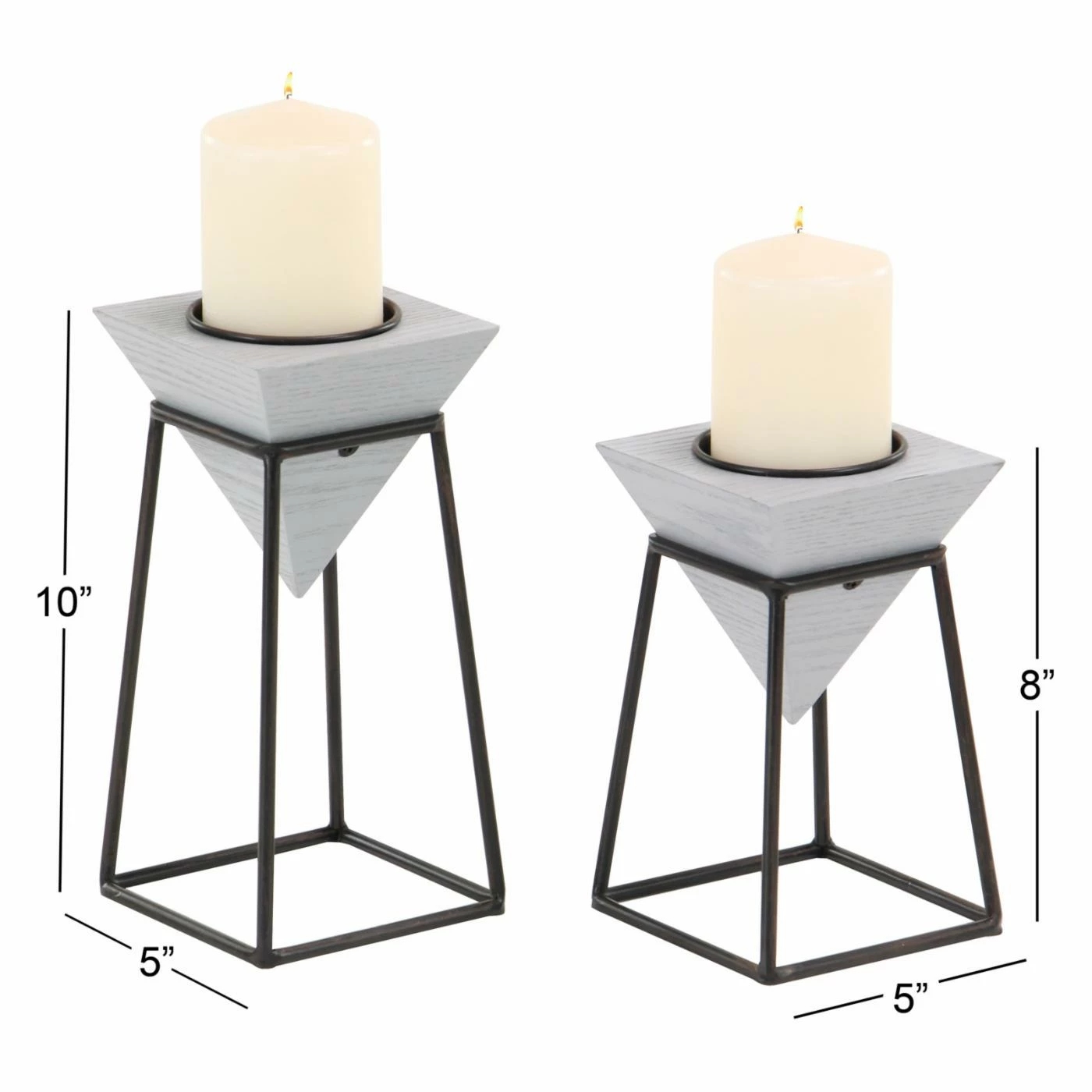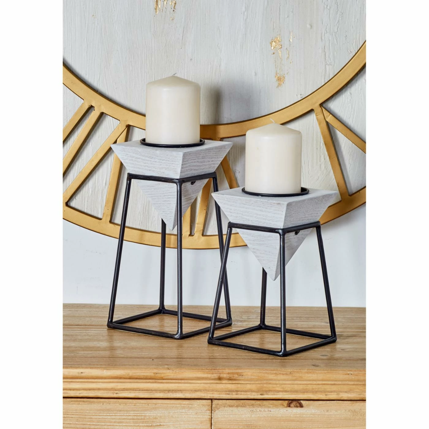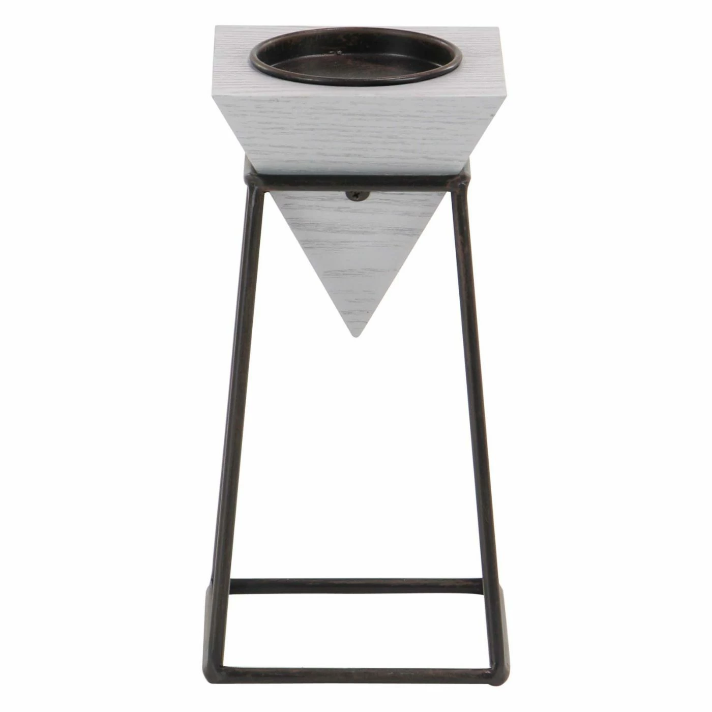 Introduce some dramatic diagonals to your dΓ©cor with the DecMode Gray Inverted Pyramid Wooden Candle Holders with Black Iron Stand – Set of 2. Each pillar candle holder consists of an inverted wood pyramid and a heavy-duty iron trapezoidal stand.
