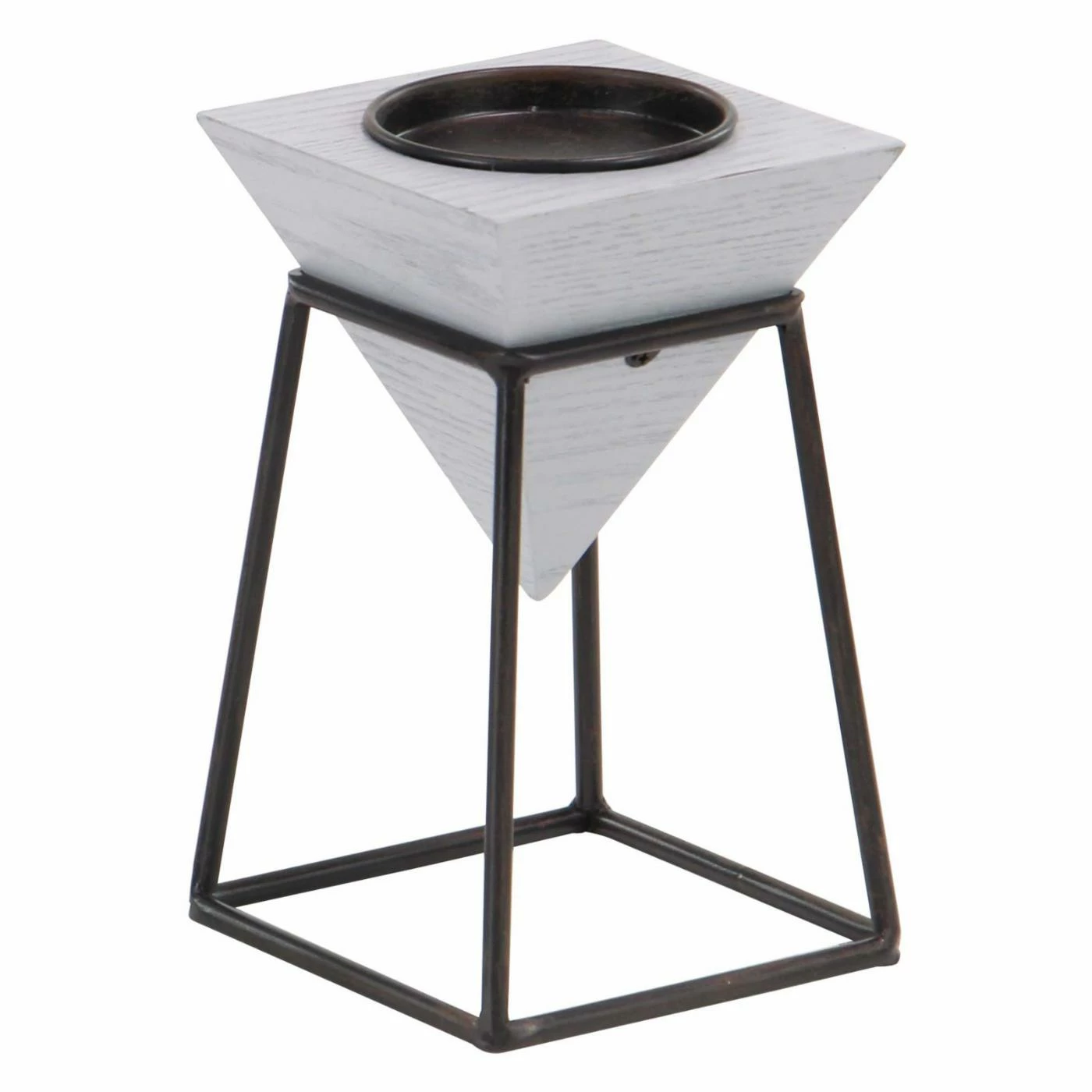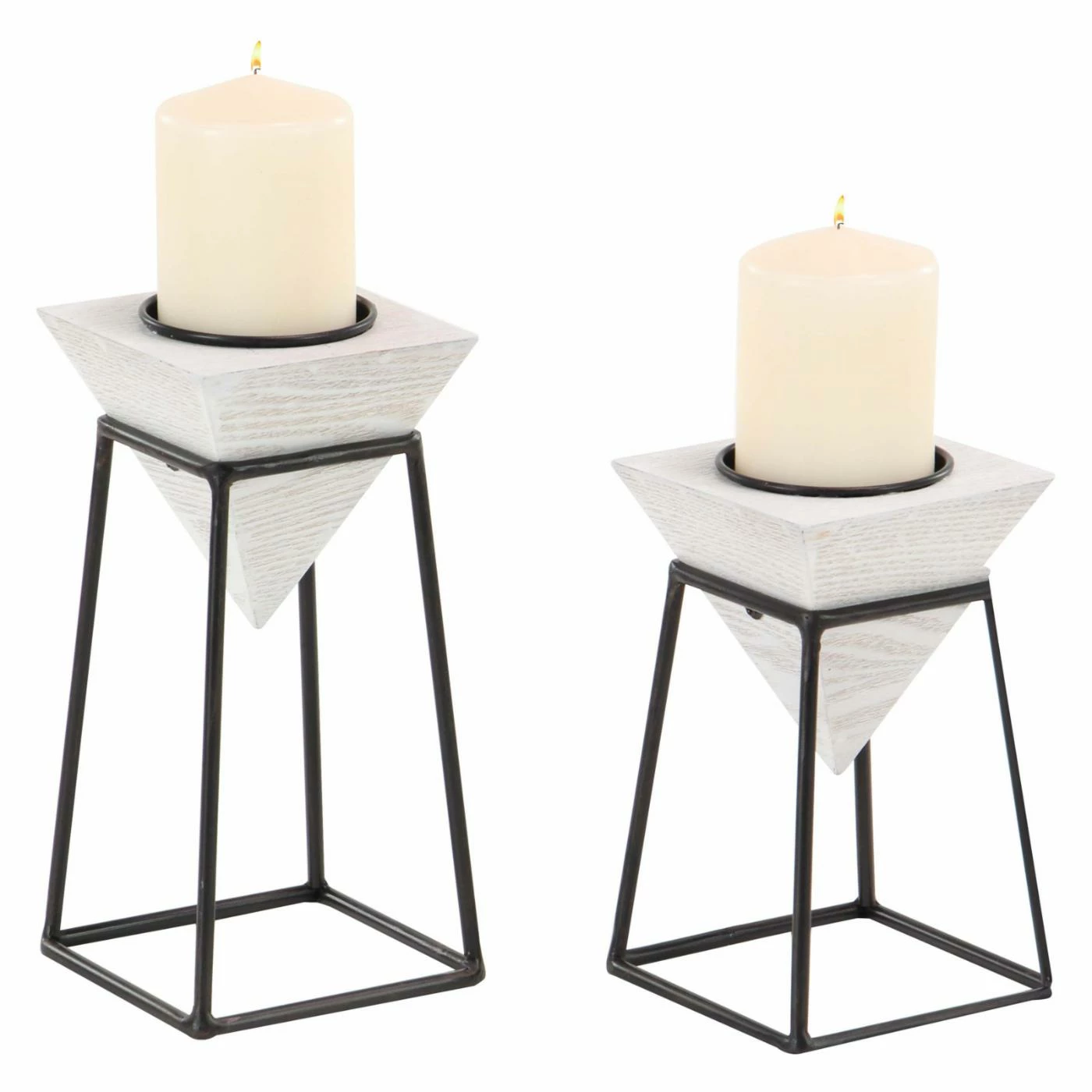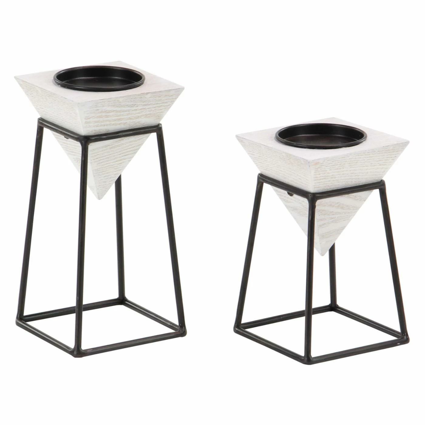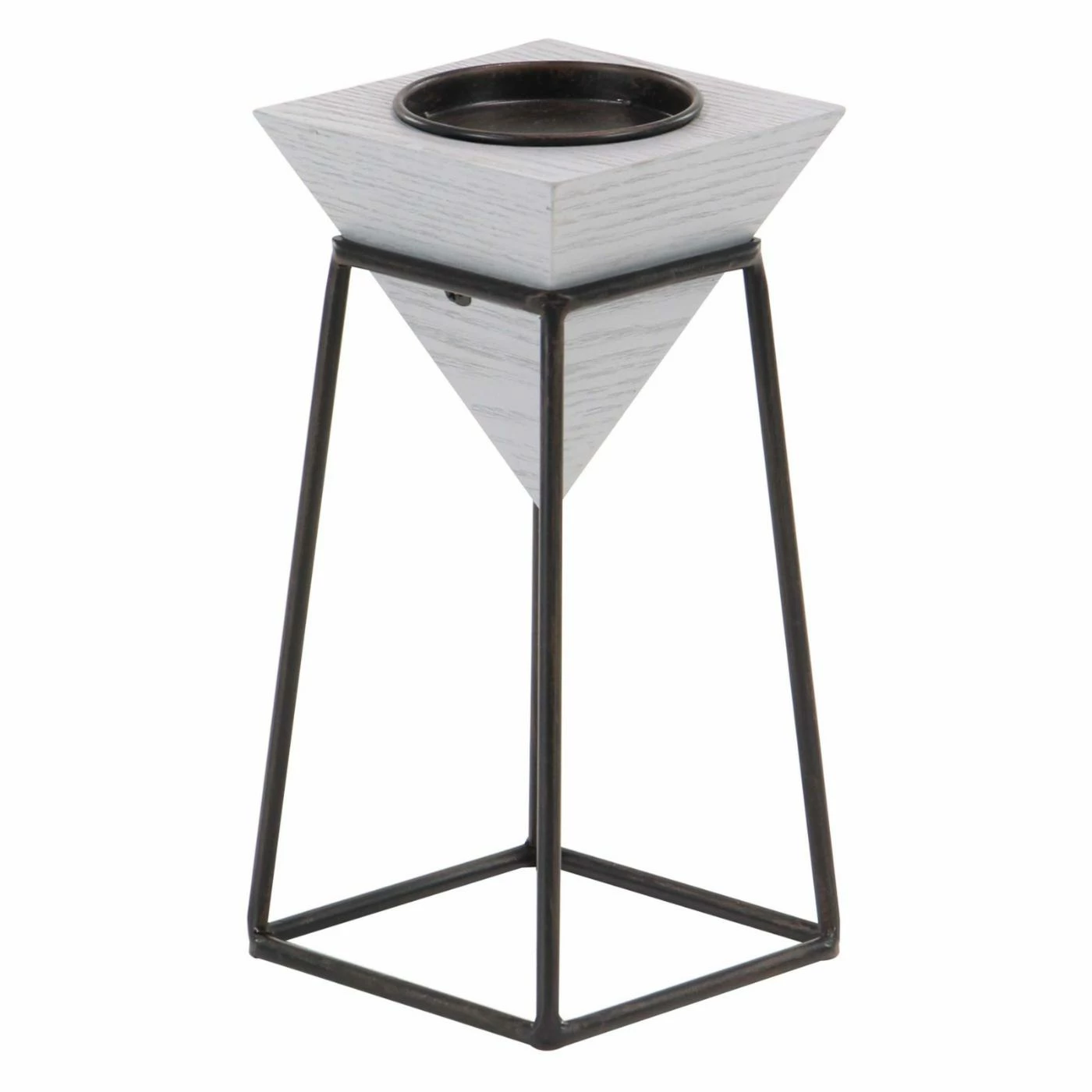 Introduce some dramatic diagonals to your dΓ©cor with the DecMode Gray Inverted Pyramid Wooden Candle Holders with Black Iron Stand – Set of 2. Each pillar candle holder consists of an inverted wood pyramid and a heavy-duty iron trapezoidal stand.