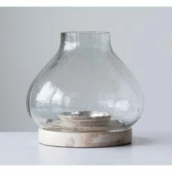 Buy ❤️ 3R Studios Whitewashed Mango Wood And Clear Handblown Glass Hurricane Candle Holder 🥰