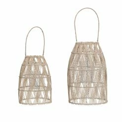 Cheap 😀 3R Studios Woven Bamboo Lantern With Glass Insert And Handle – Set Of 2 🌟