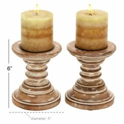 Hot Sale ๐ Pillar DecMode 6-in. Round Turned Wood Candle Holder – Set Of 2 ๐
