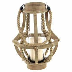 Hot Sale ๐ DecMode Rustic Wood And Glass Faceted Votive Candle Lantern With A Rope Handle ๐