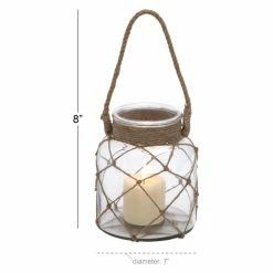 Promo 🎁 DecMode Rustic Wood And Glass Votive Candle Lantern With A Rope Handle 🔥