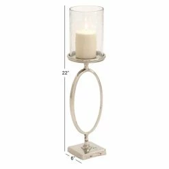 Promo ๐ DecMode Metal And Glass Hurricane Candle Holder ๐