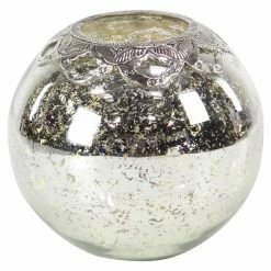 Brand new ๐คฉ Hurricane DecMode Glass Decorative Candle Holder – Silver / Clear ๐