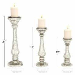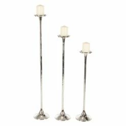 Buy 👏 Pillar DecMode Processional-Inspired Metallic Aluminum Candle Holders – Set Of 3 ✔️
