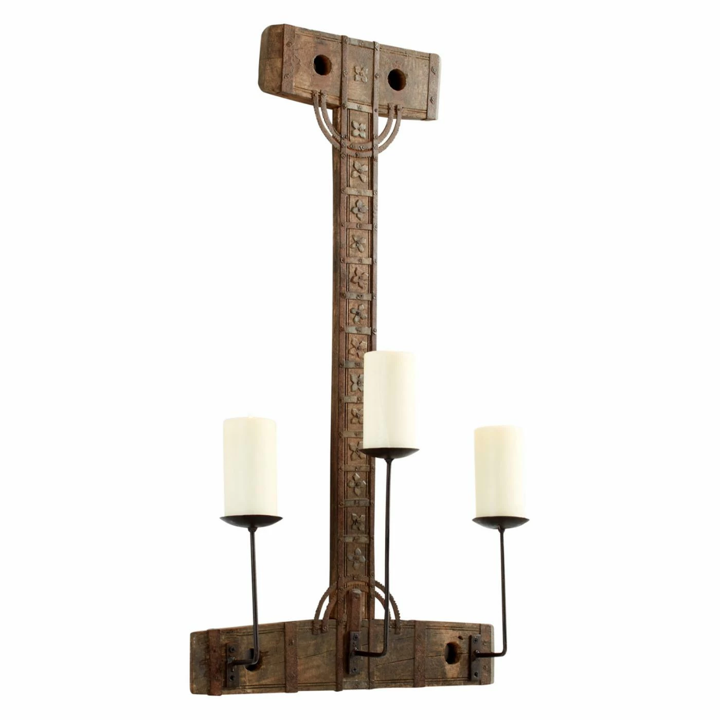 Give any wall in your home an instant focal point by hanging the Cyan Design Tallulah Candleholder. This tall and captivating candleholder features a wood back plate with intricate textured details. Three slender metal arms support a trio of pillar candles you select.