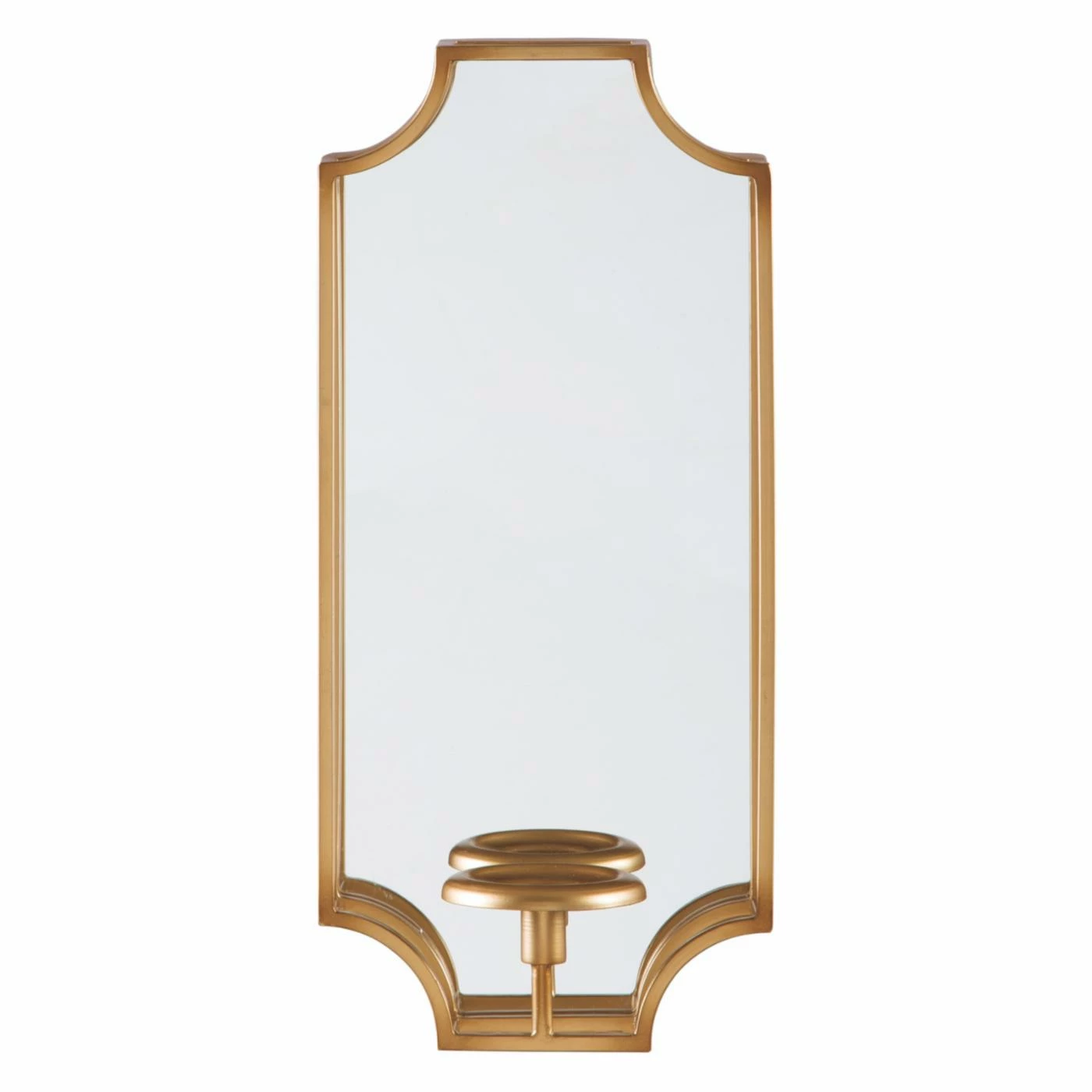 Pair two or more of the Signature Design by Ashley Dumi Wall Sconce together for the best in low lighting. This piece features two candle holders inside of a geometric archway. Perfect for hallways, bedrooms, bathrooms, or any room you want your style on display. Each sconce is crafted from metal for durability and finished in classic gold. This wall sconce is meant for both modern or traditional tastes.