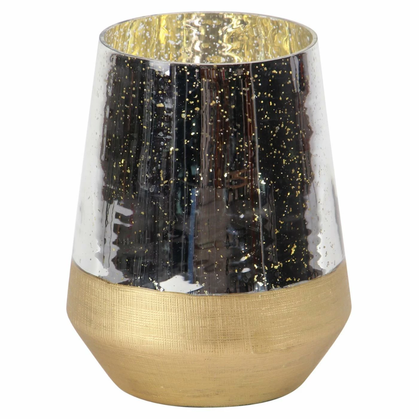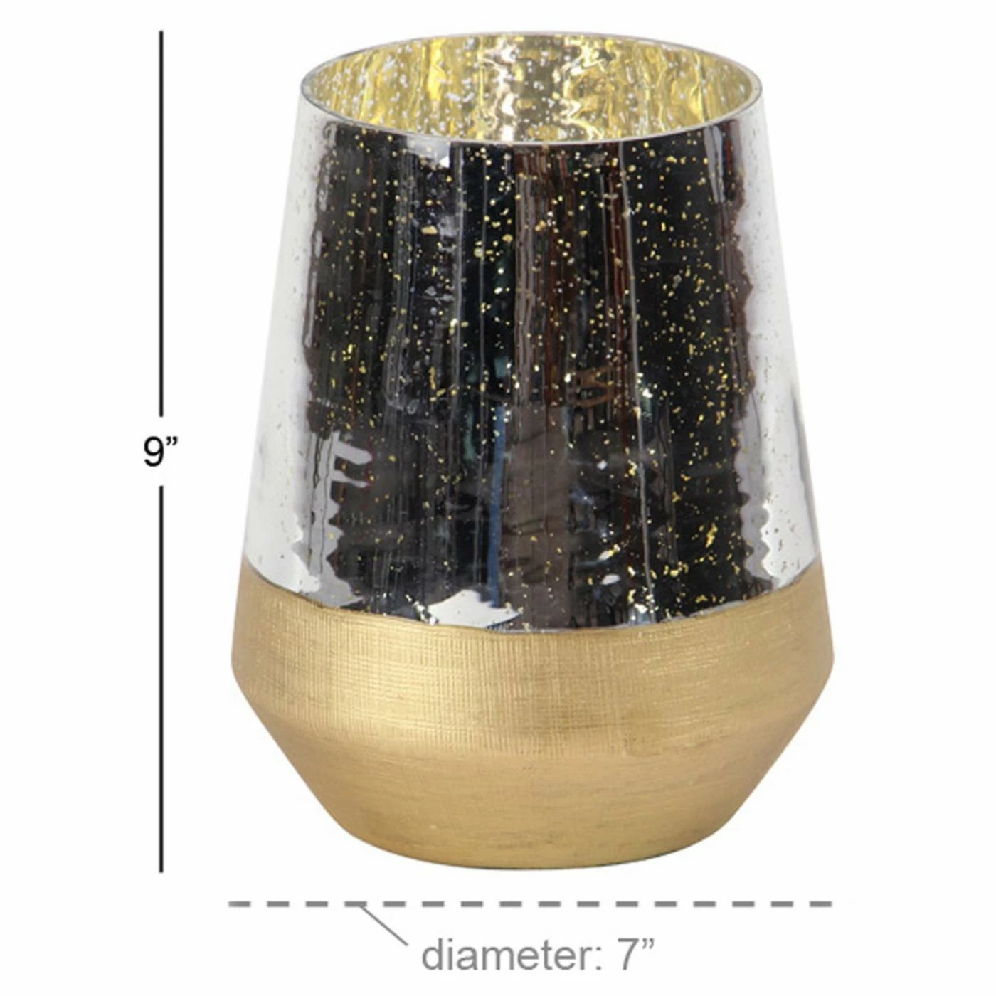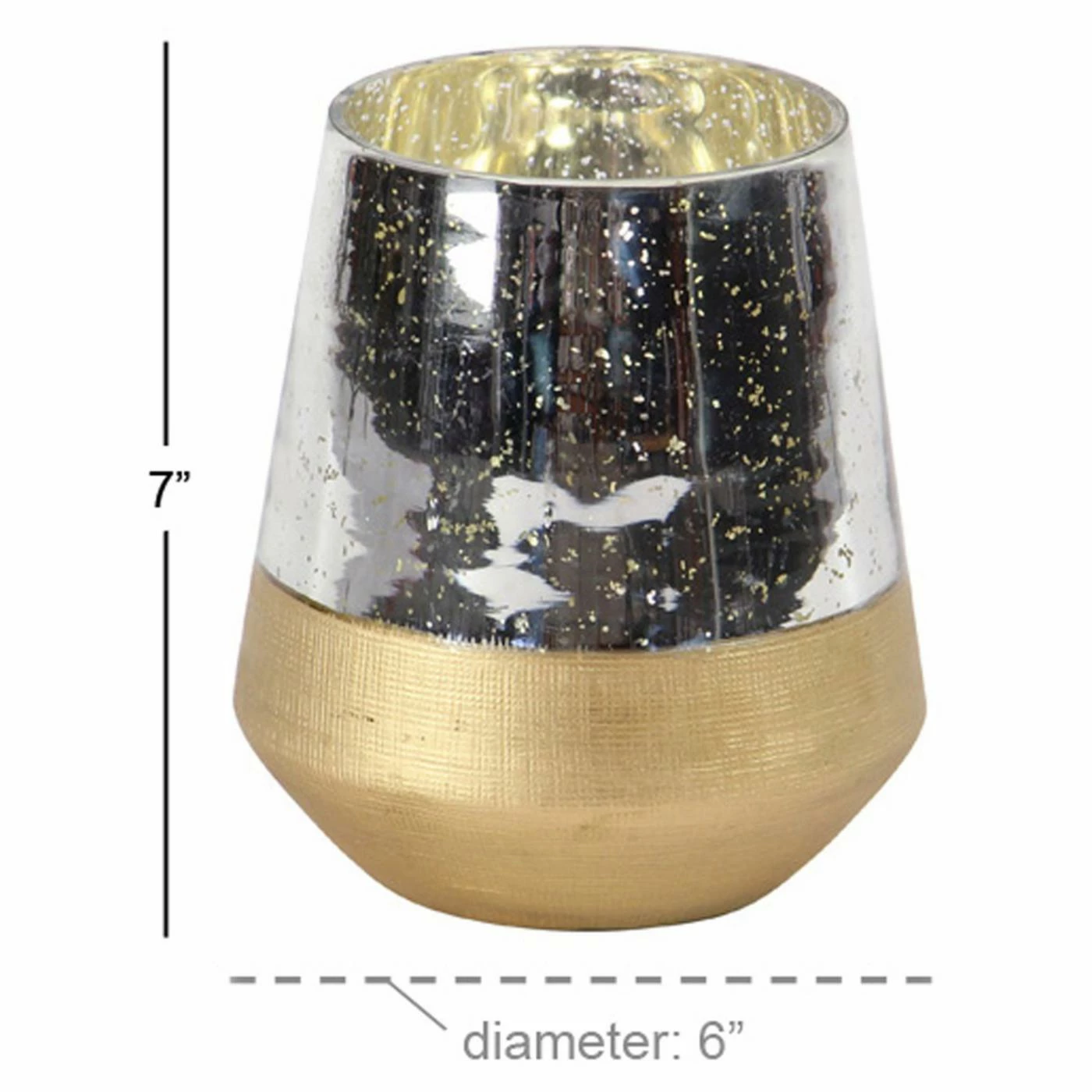 Style the DecMode Metallic Candle Holder wherever you need a touch of glamour. Its textured gold base is topped by a shimmering silver band with gold accents. This candle holder is dazzling lit or unlit. It’s offered in your choice of available size.