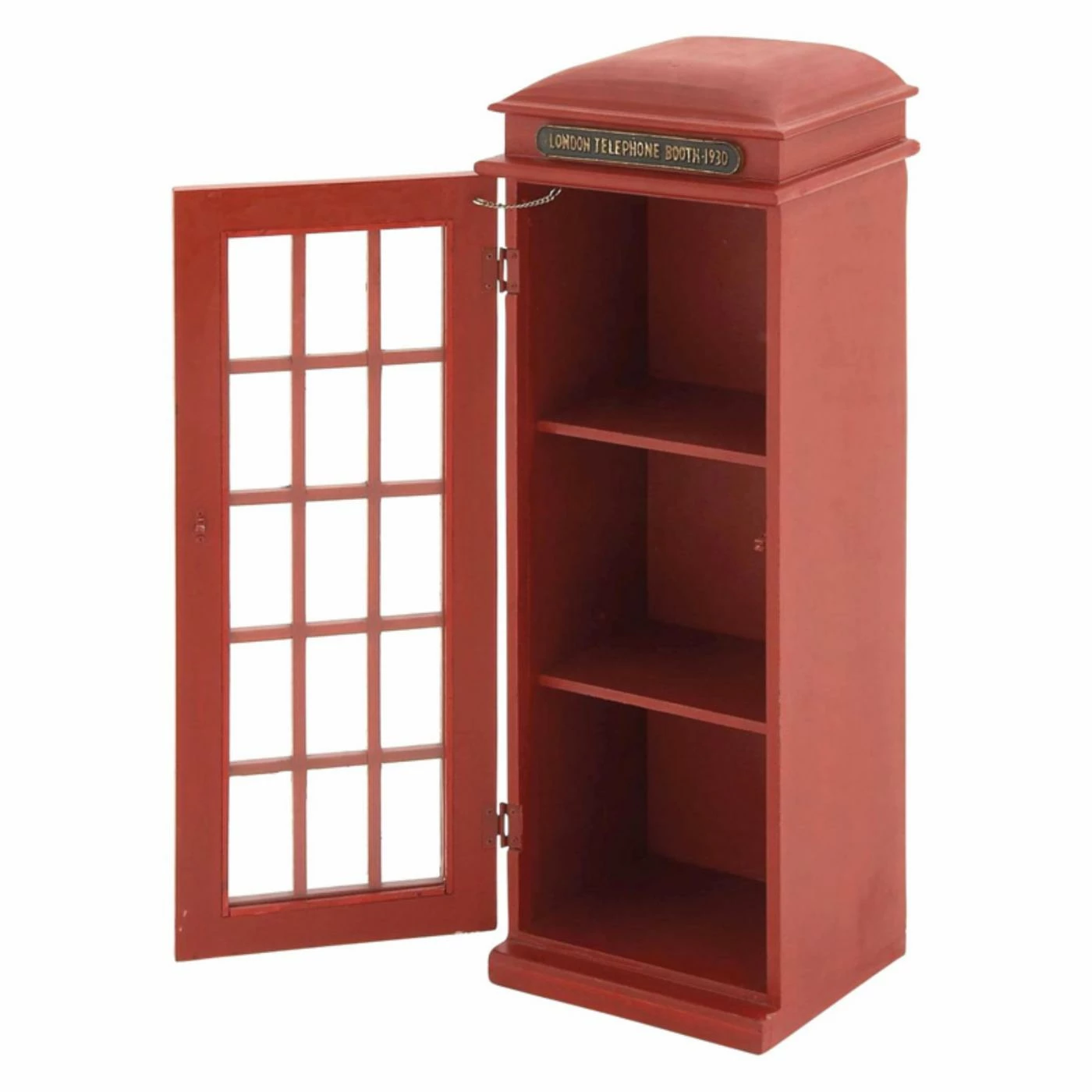 Londonβs calling with the DecMode Wood British Telephone Box Candle Holder. This classic red telephone booth features a latticed door that swings open to reveal three shelves. It holds three candles and adds a cultural touch to dΓ©cor.